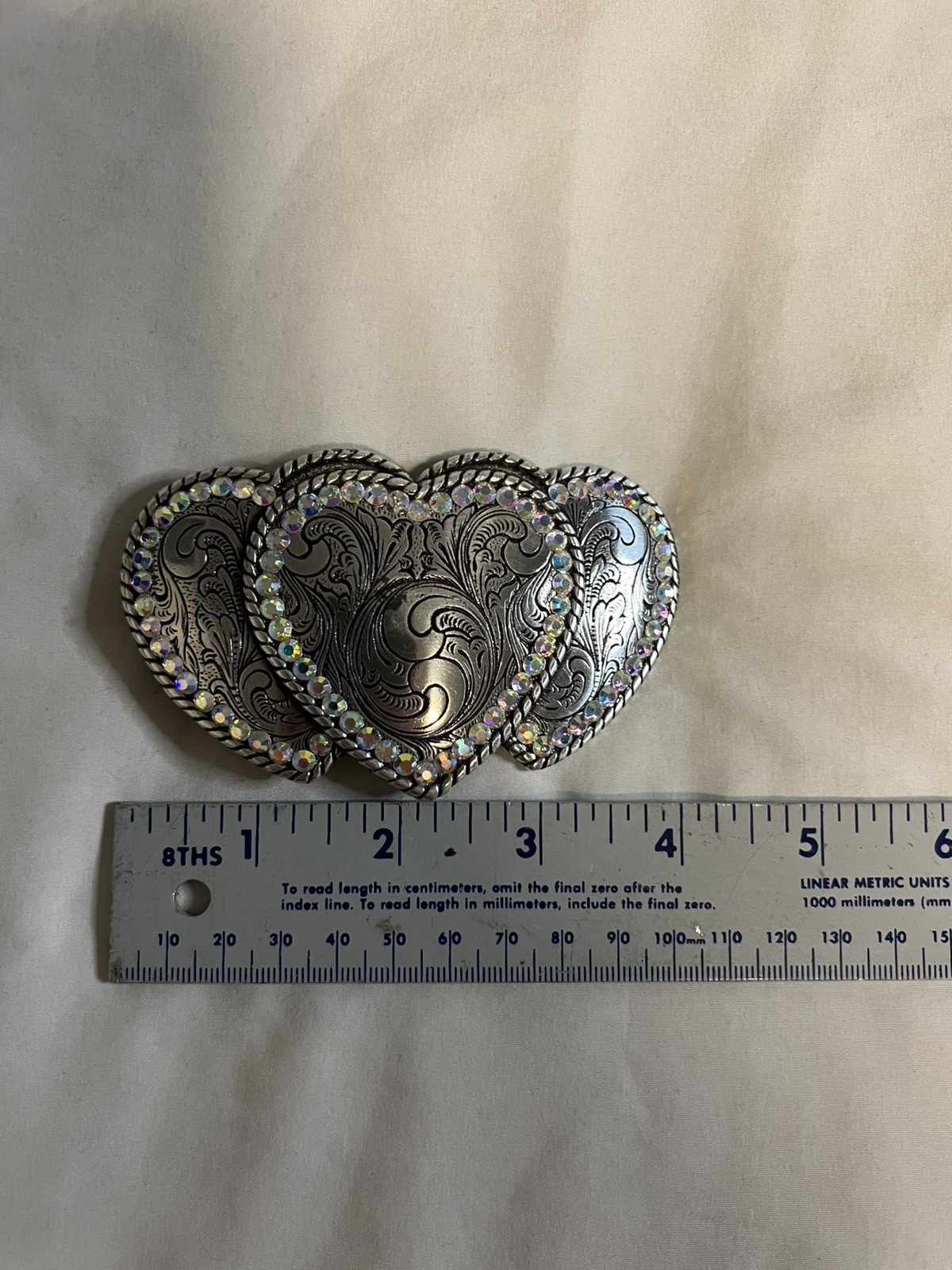 Three Hearts - Ornate Shaped Cowboy Cowgirl Rhinestone Accented Belt Buckle