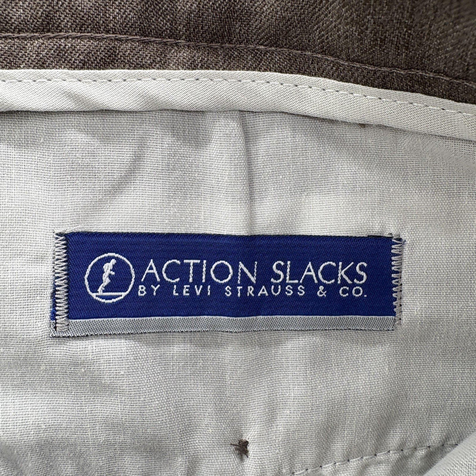 Levis Action Slacks Dress Pants Mens 38x30 Brown Polyester Flat Front Casual VTG