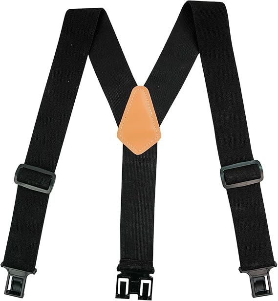 Belt Clip Suspenders with Fully Elastic with Hook End Non-Metal Plastic Blk