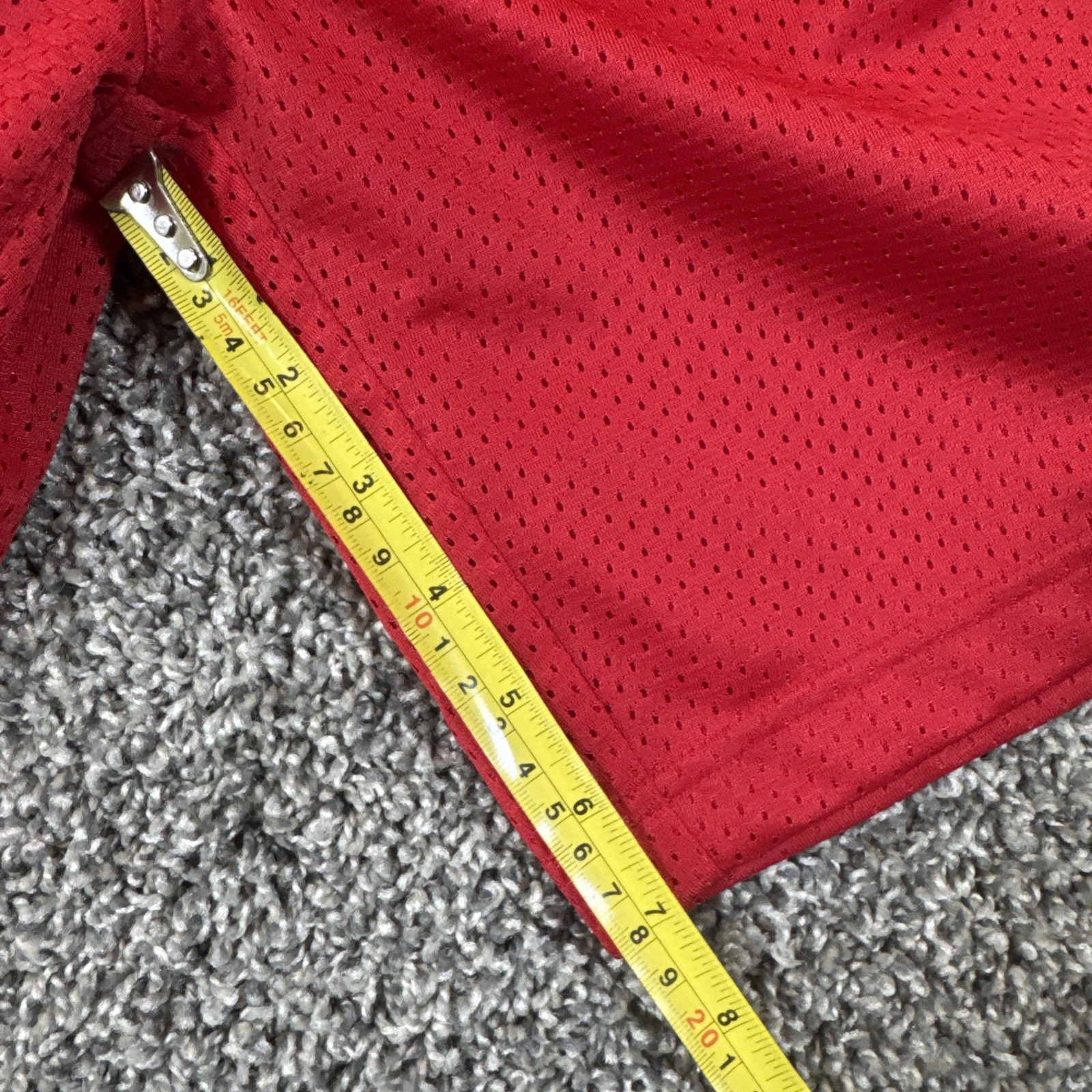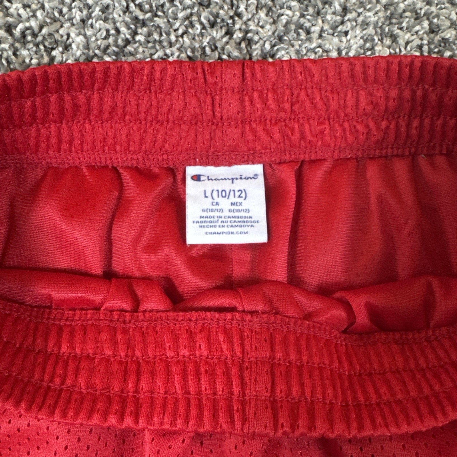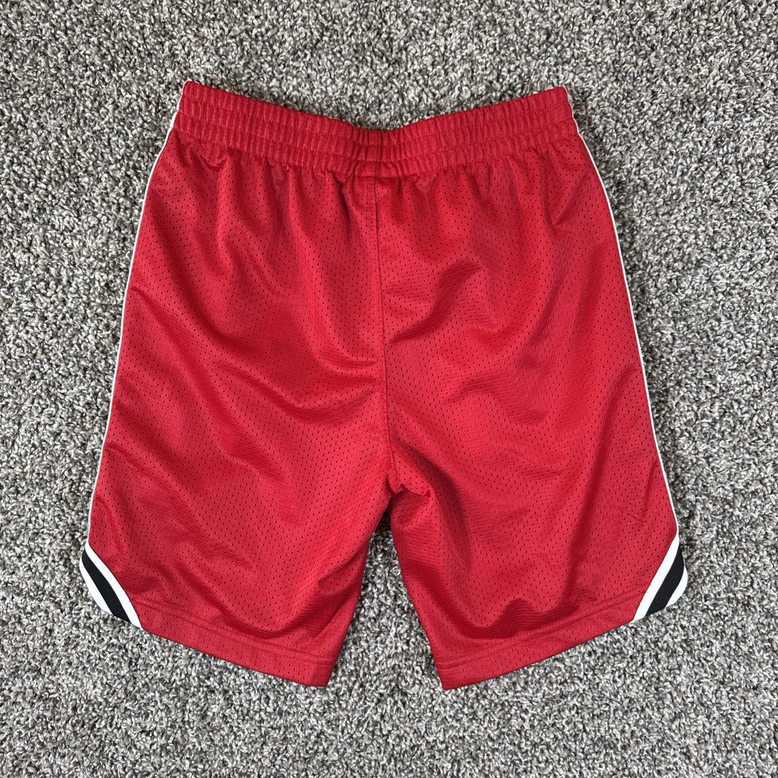 как выглядит Champion Red Mesh Athletic Shorts White and Black Side Stripes Youth L 10/12 фото