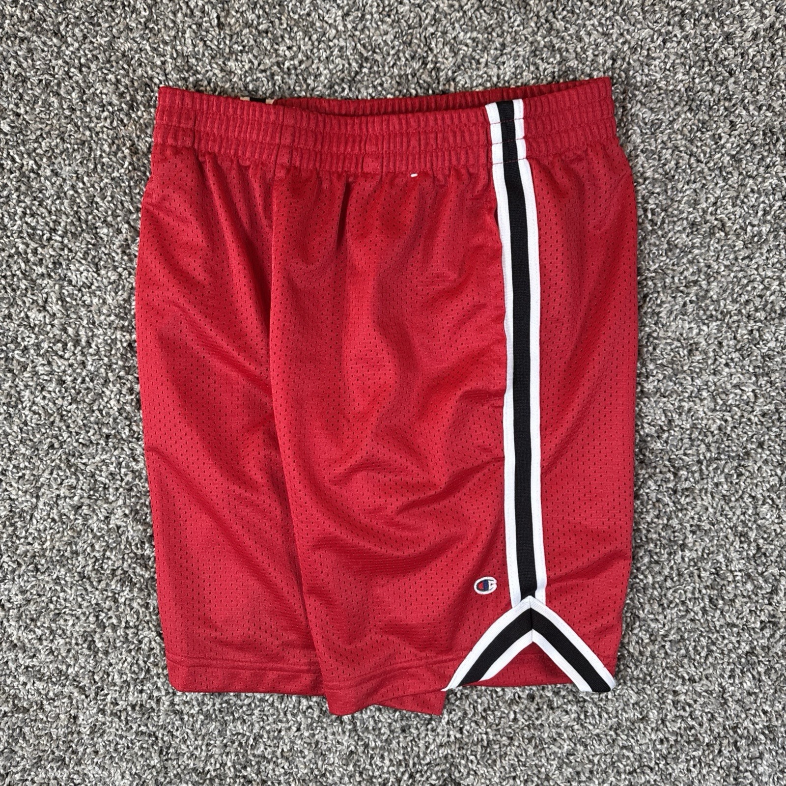 Champion Red Mesh Athletic Shorts White and Black Side Stripes Youth L 10/12
