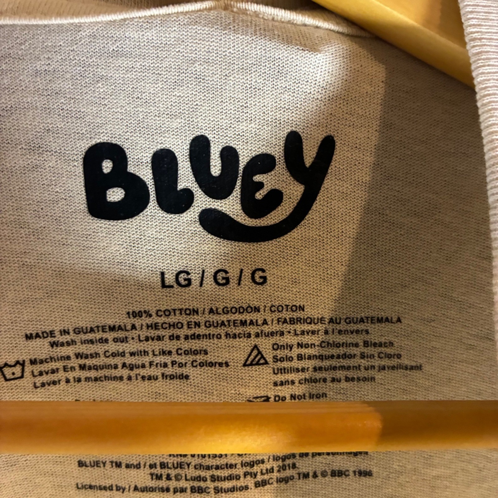как выглядит Bluey Family Graphic Print T-Shirt Tan Crew Neck Short Sleeve Mens L фото