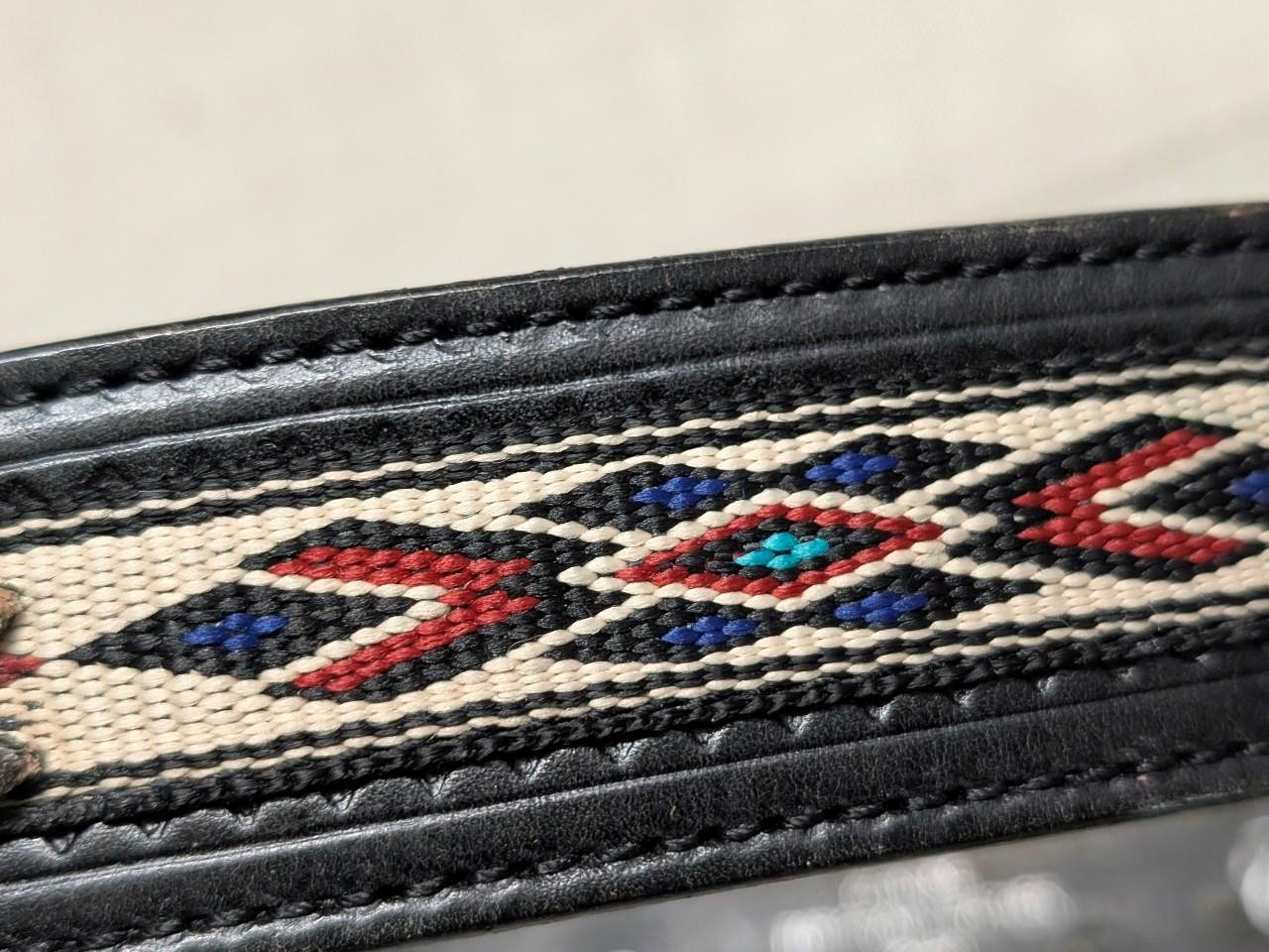 как выглядит vintage WESTERN buckle belt NATIVE AMERICAN leather 36 concho TOOLED wrangler фото