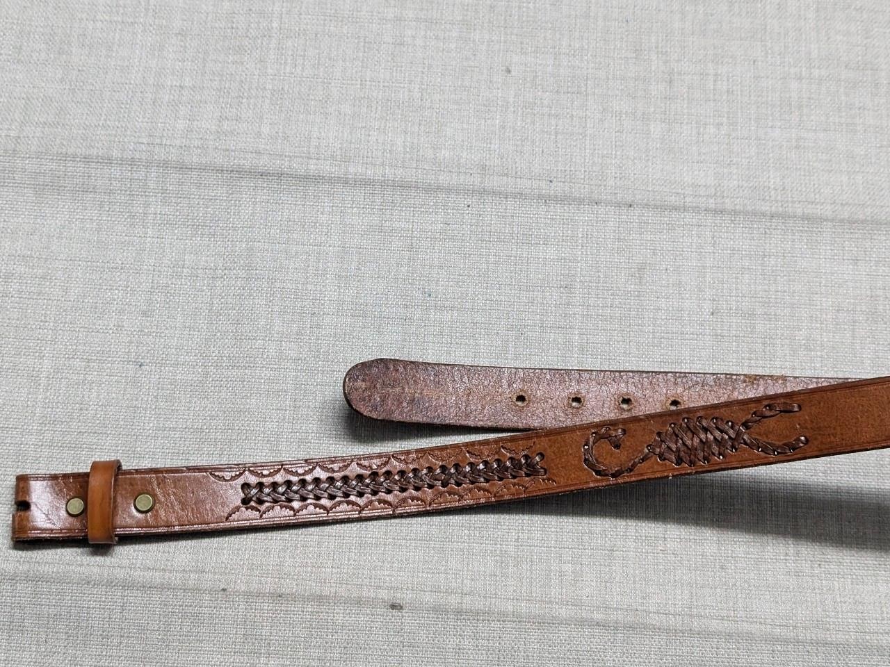 как выглядит vintage HANDCRAFTED buckle belt SCORPION leather 36 brown WESTERN tooled cowhide фото