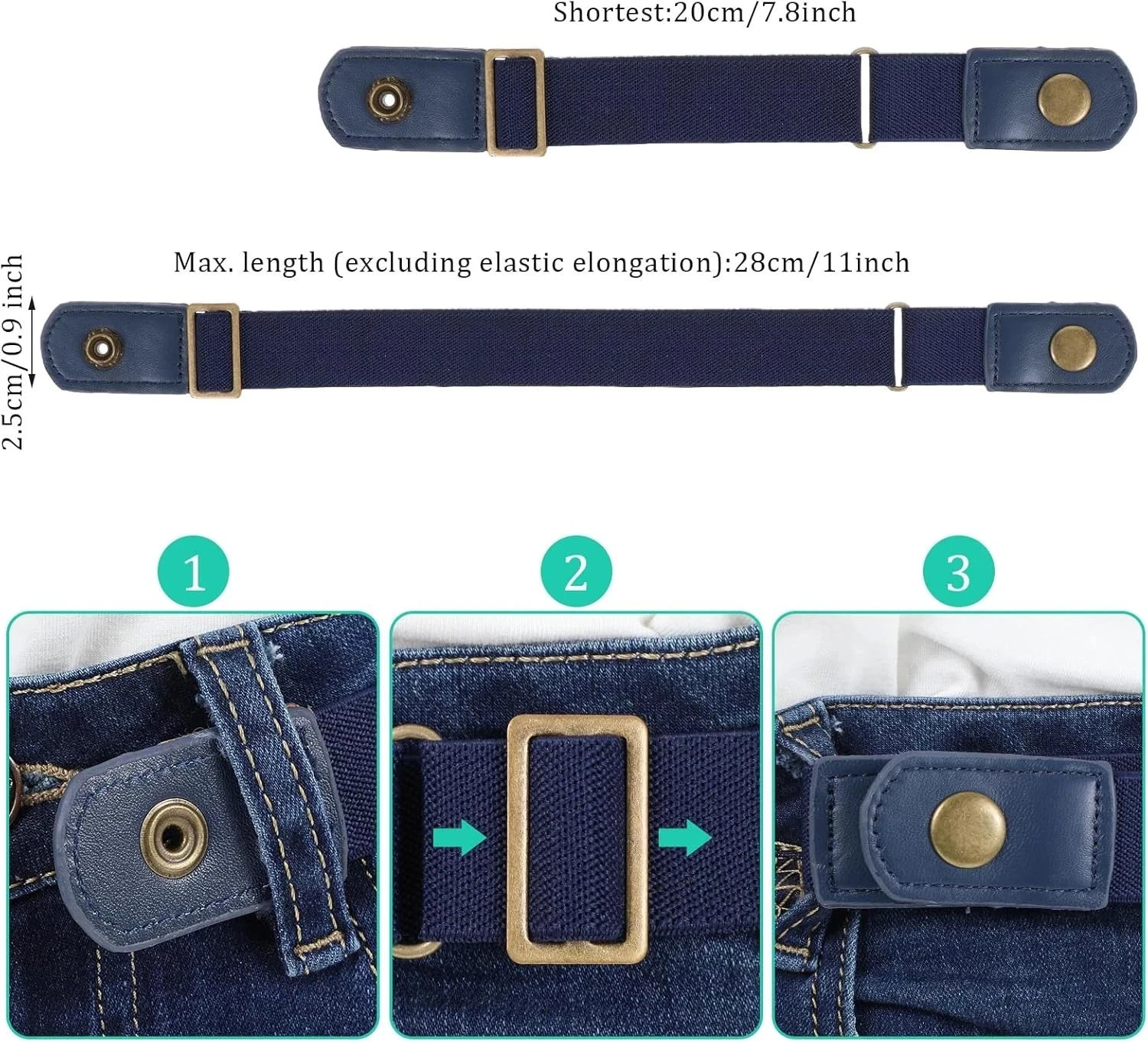 2 Pcs Buckle Free Belt Women Men, Elastic Comfortable Side Belt Bros Invisible B