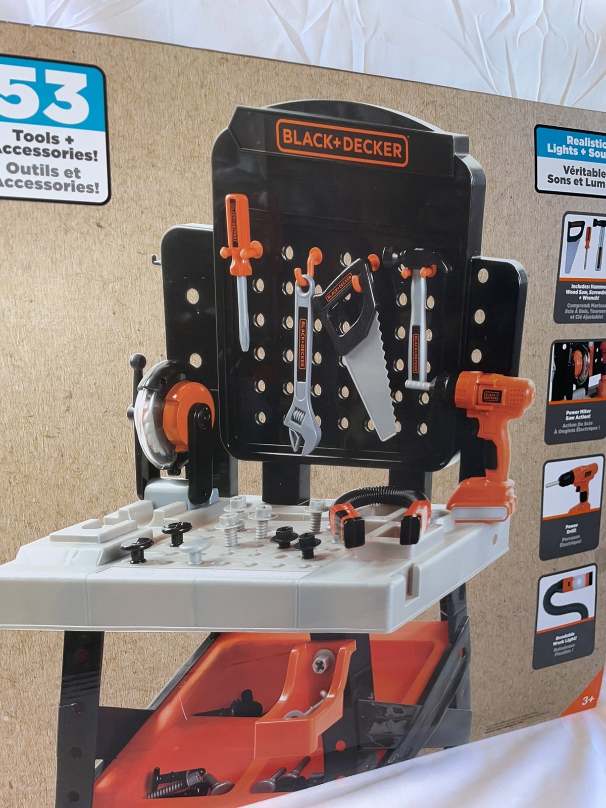 Black Decker Junior Ready to Build Workbench Kids Play 53 Tools Sounds Light