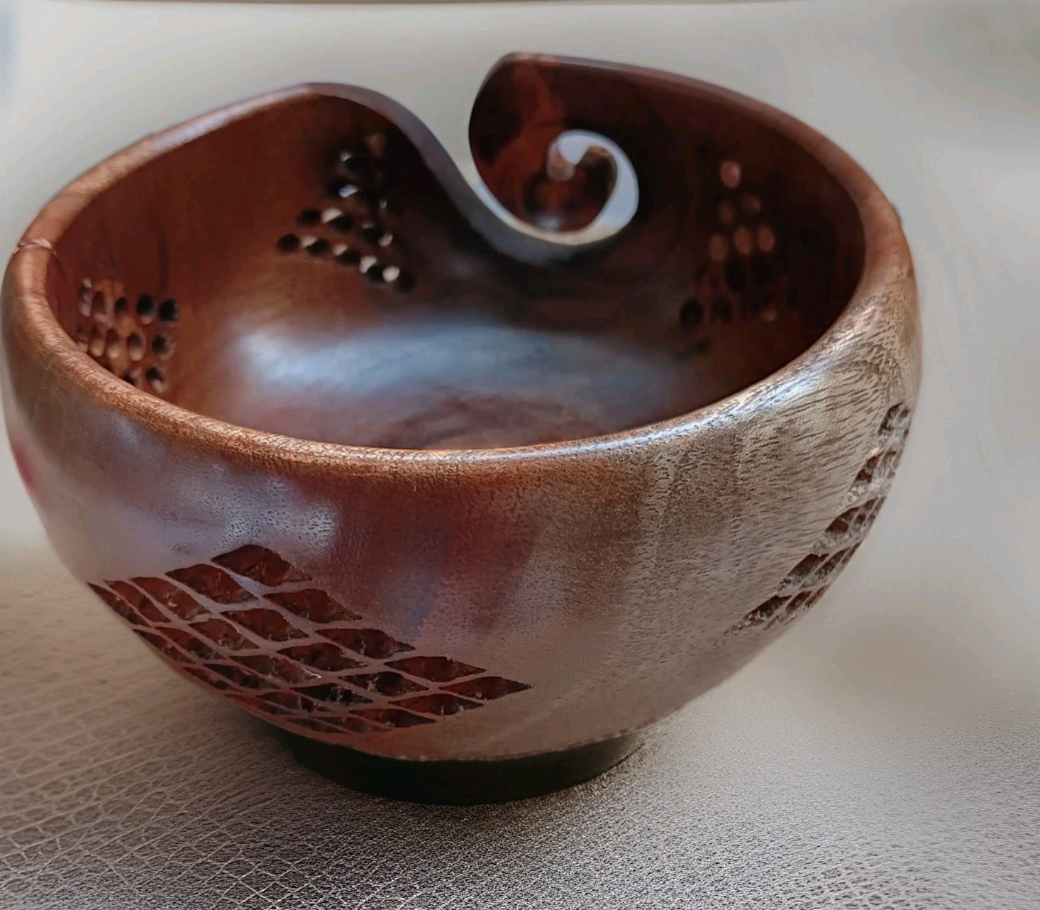 как выглядит Wooden Yarn Bowl Hand Made Rosewood Wood For Knitting Crochet Yarn Holder фото