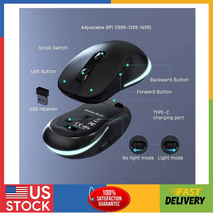 Large Print Wireless Keyboard and Mouse - 7 Colors Backlit Keyboard,Rechargeable