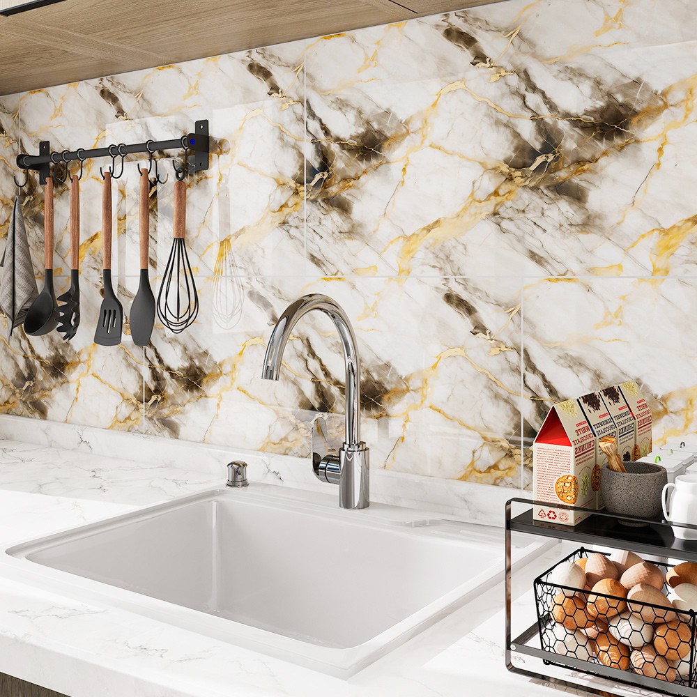 Marble Tile Stickers 23x11in Self Adhesive Wall Tiles Waterproof Peel and Stick