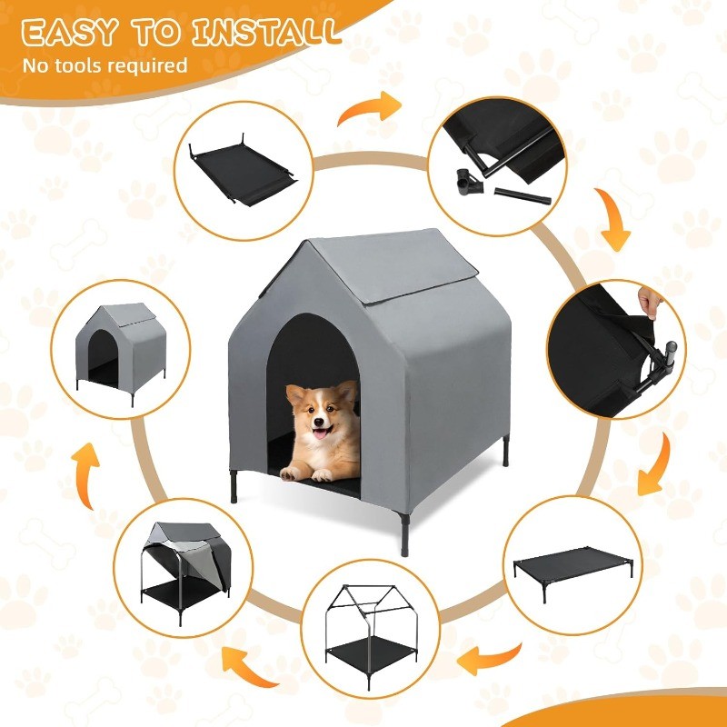 как выглядит 2-in-1 Dog House for Small/Medium Dogs Elevated Dog Bed with Canopy 36 Inch фото