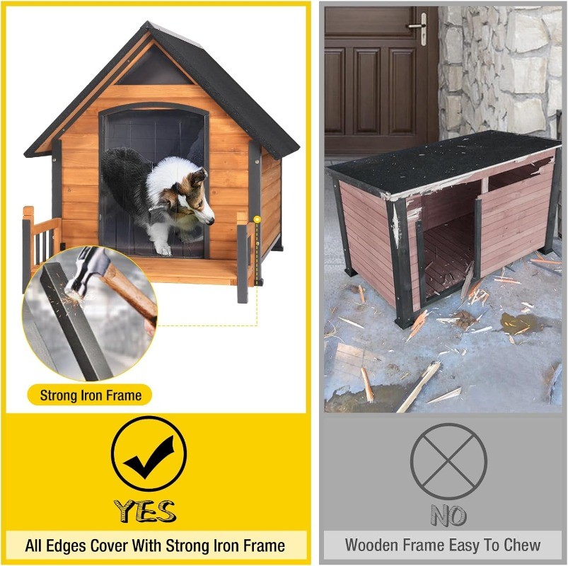 Outdoor Dog House Shelter with Metal Frame and Porch Weatherproof Asphalt Roof