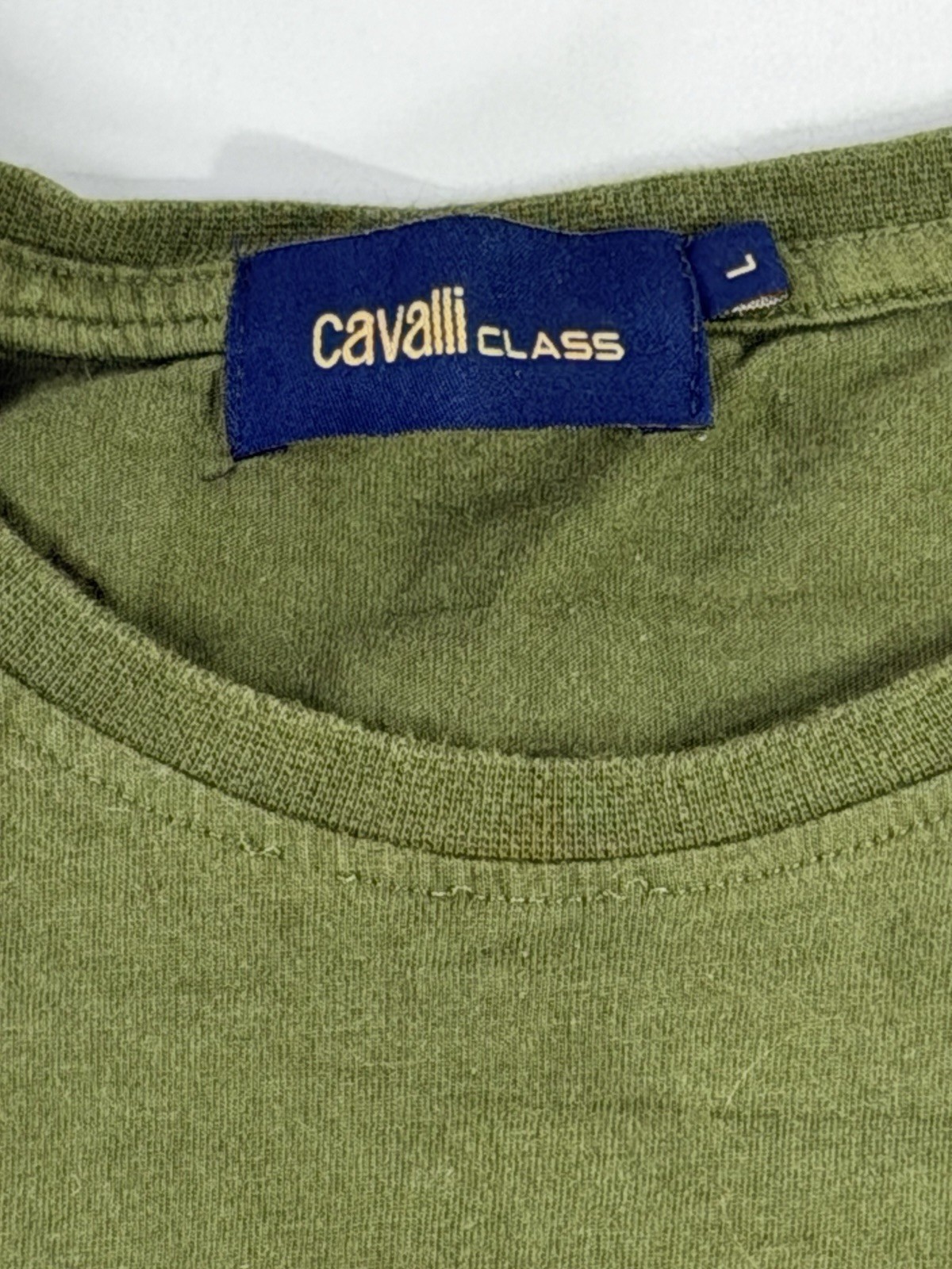 как выглядит Cavalli Class Tiger Patch T Shirt Mens Large Green Roberto Cavalli Logo Tee фото