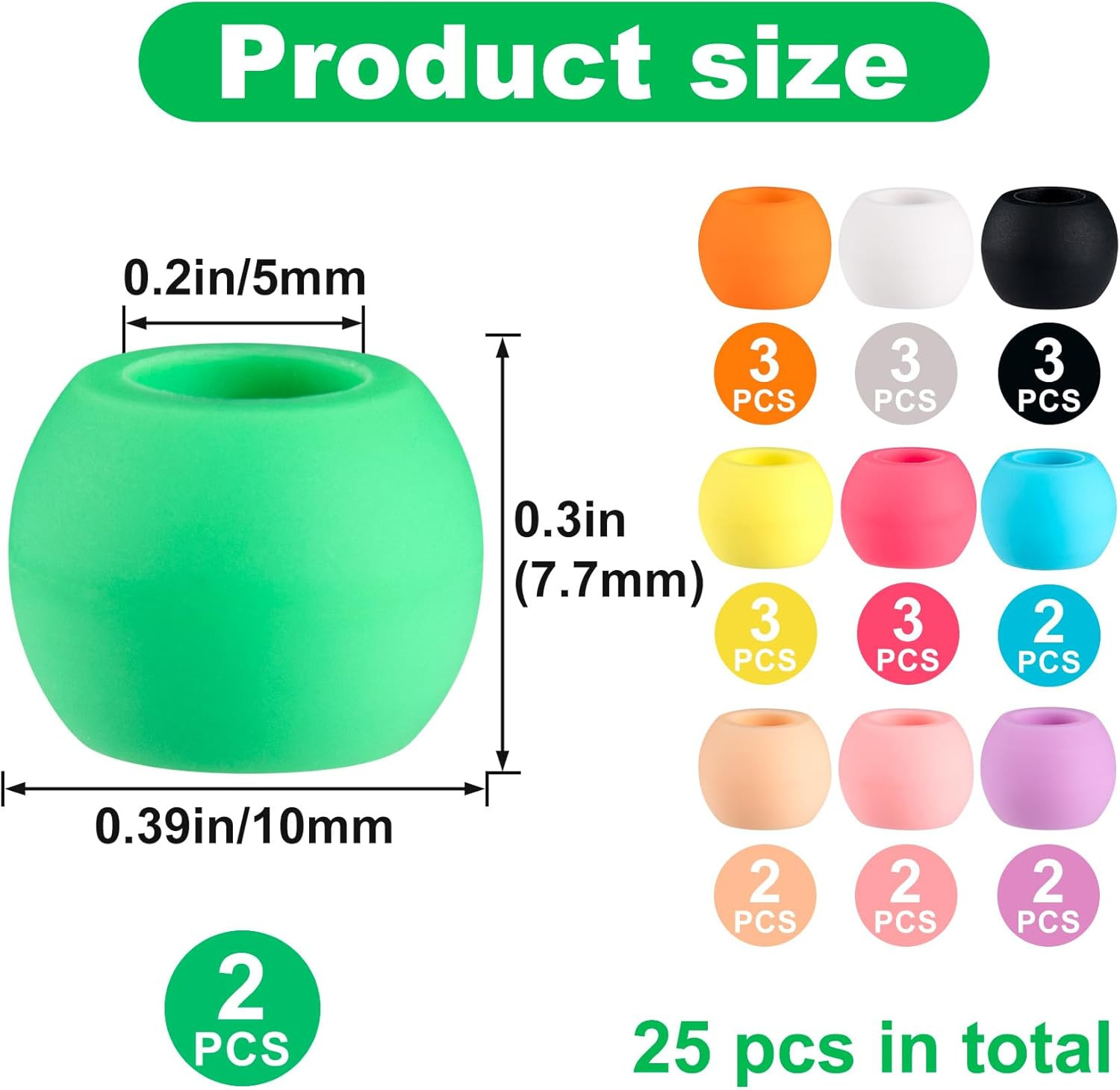 25pcs Silicone Hair Beads for Braid, Soft Pony Beads, Colorful Spacer Accessorie