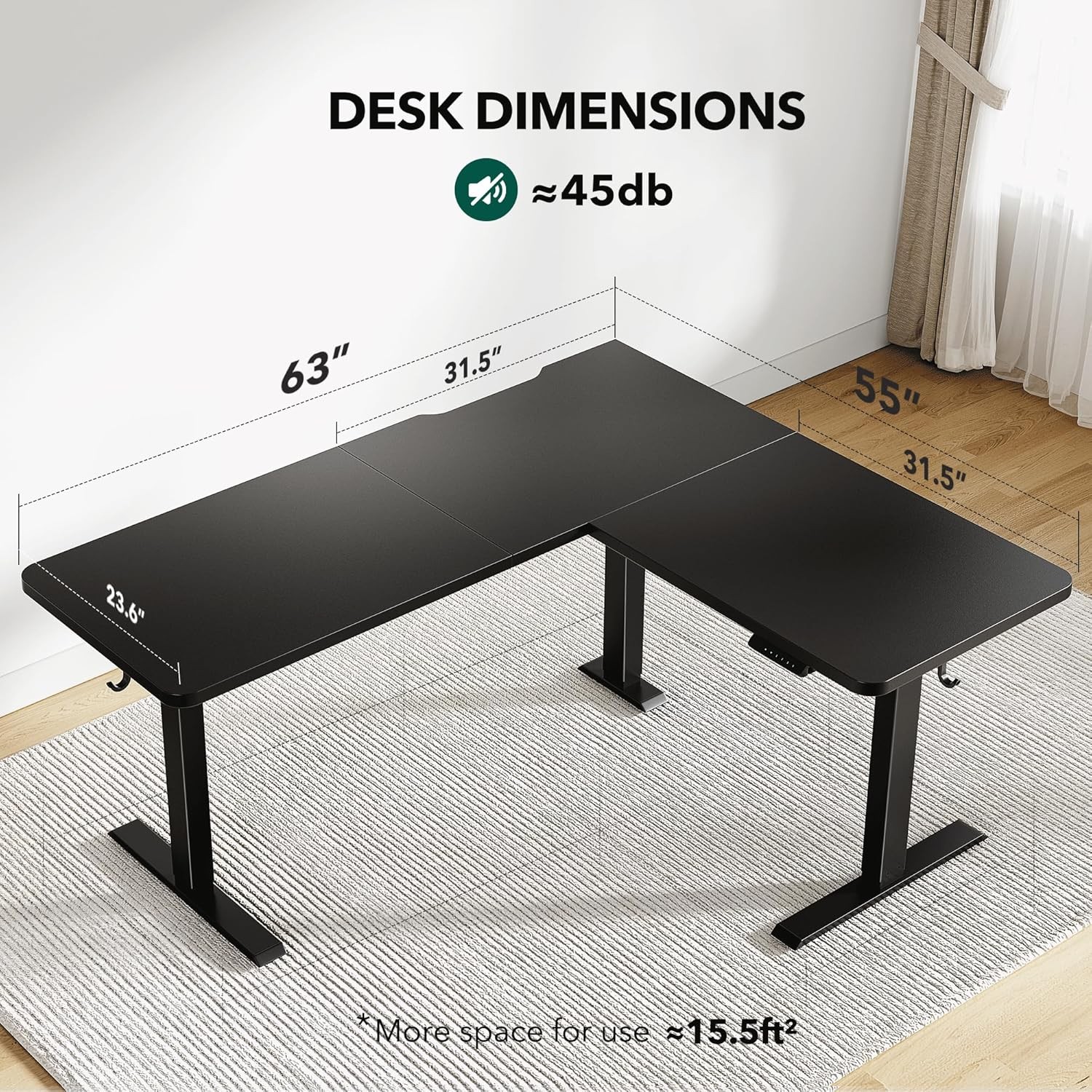 L-Shaped 63x55 Electric Standing Desk Adjustable Height Corner Black