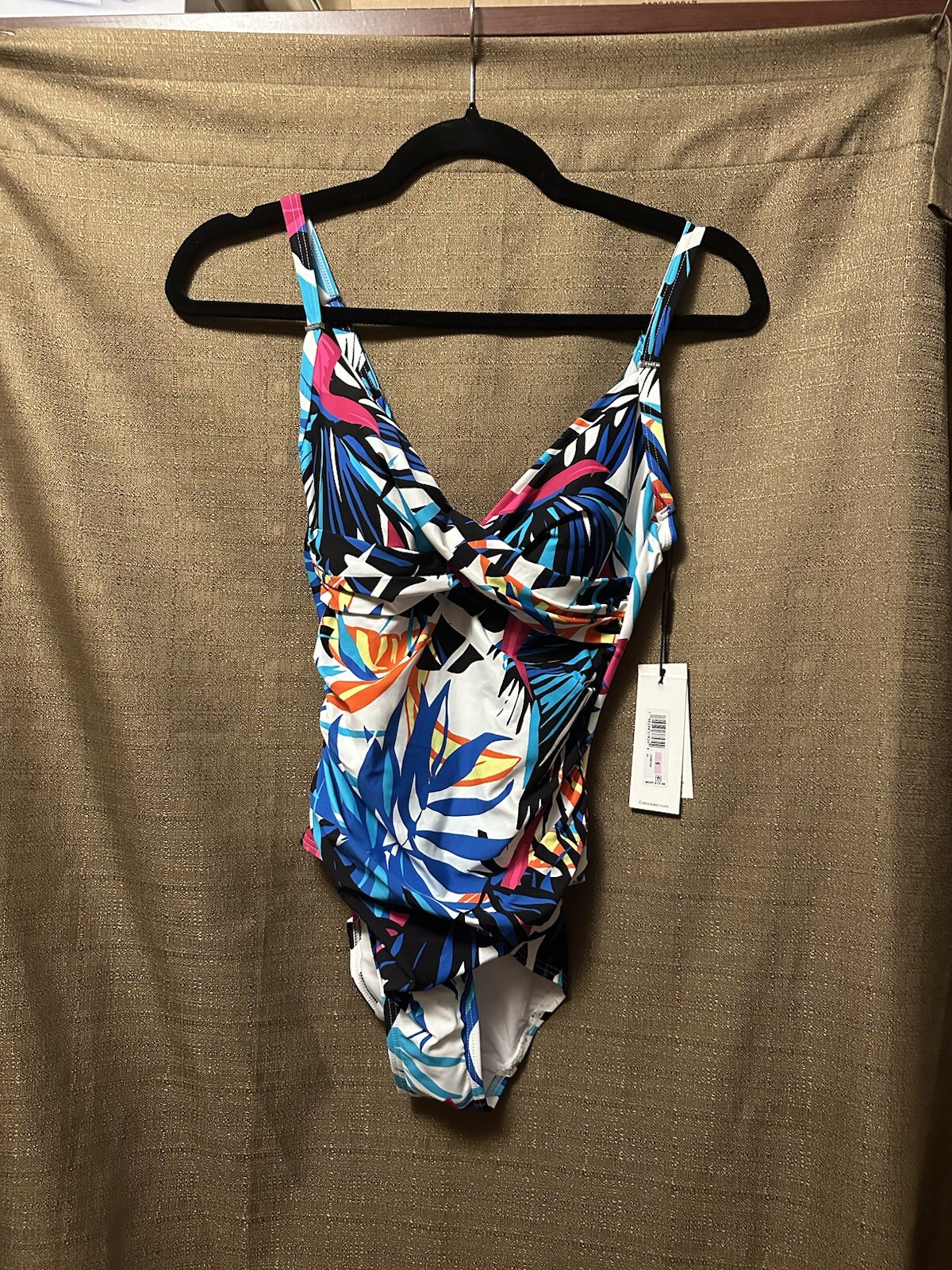 NWT Calvin Klein Standard V-neck Twist Front Tummy Control One Piece Swim Size 6