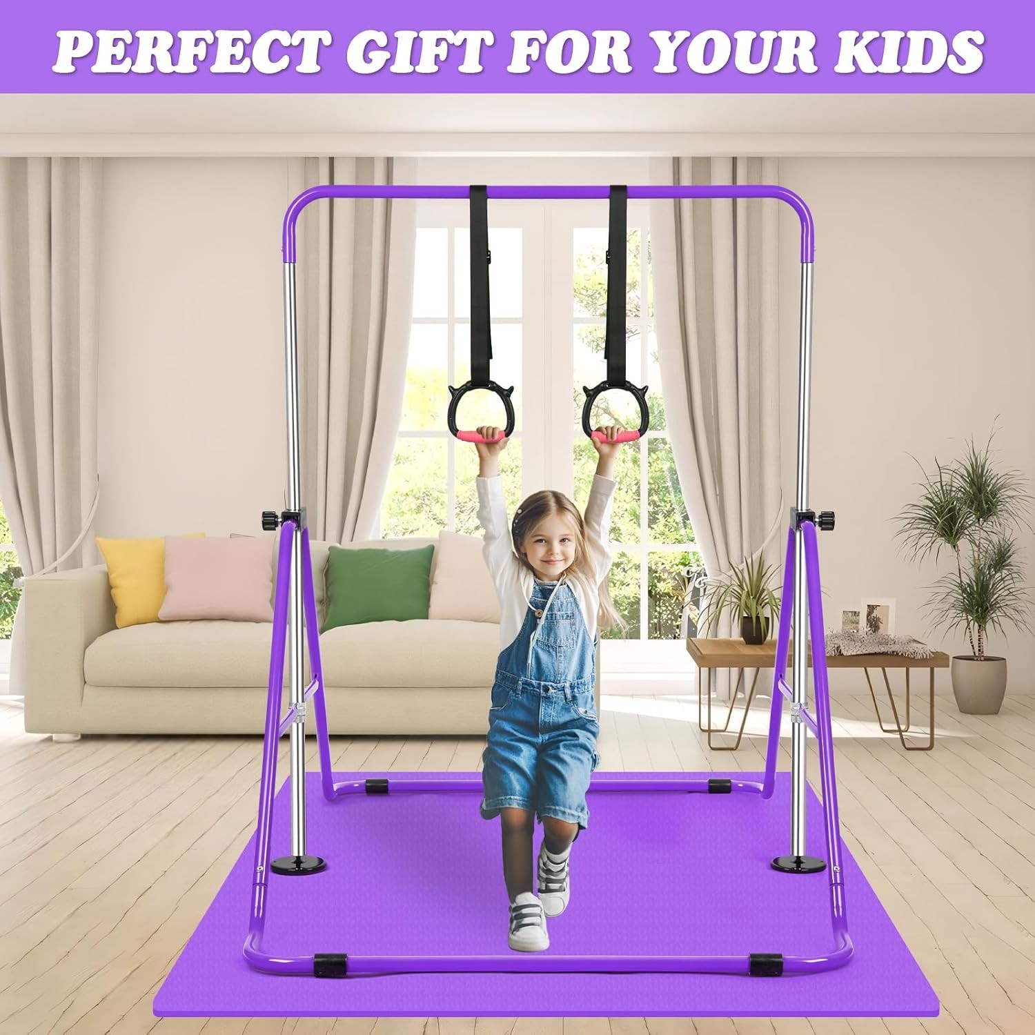 Folding Gymnastics Bars with Mat, Horizontal Bars with Adjustable Height