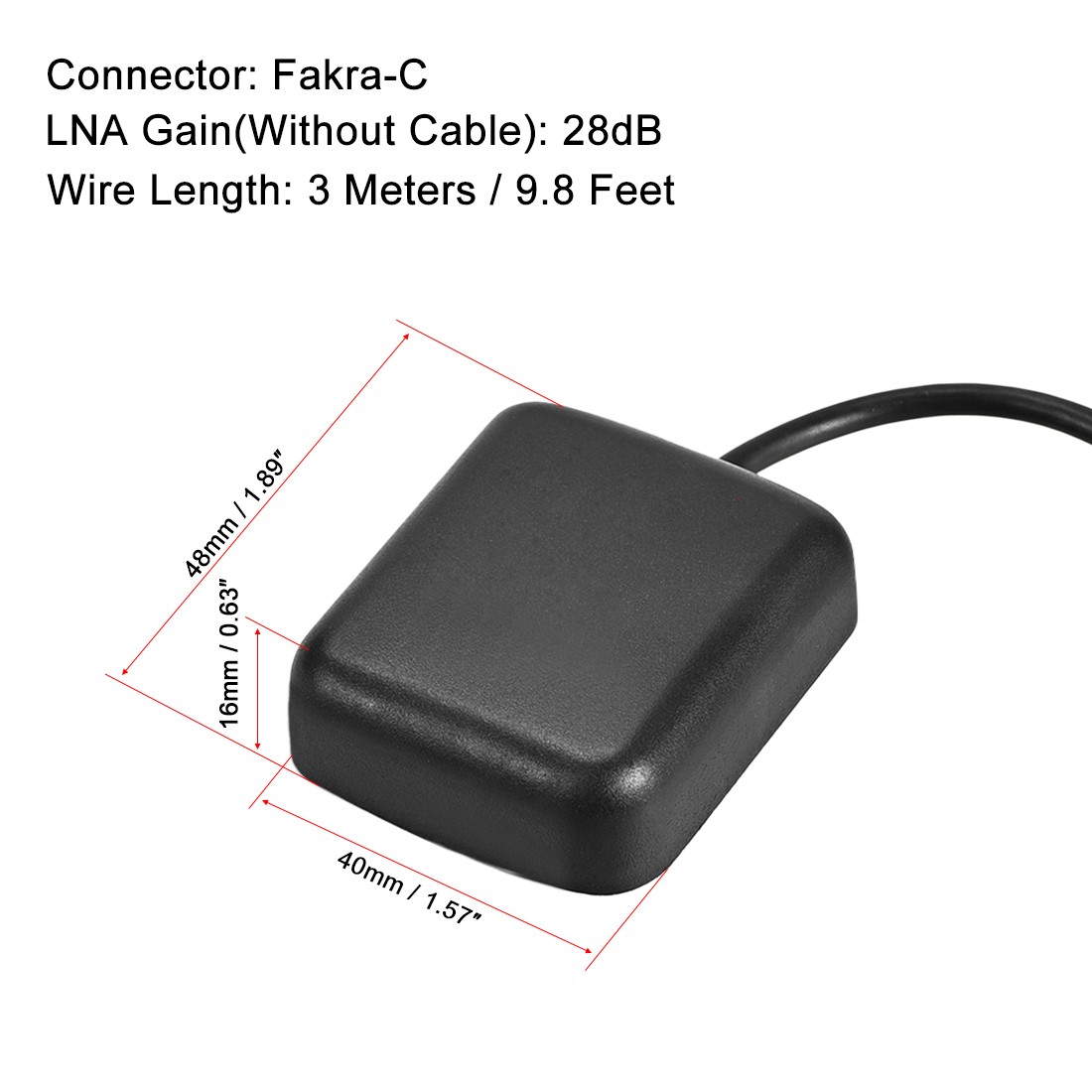 GPS Active Antenna Fakra-C Plug 28dB with Magnetic Mount 3 Meters Wire
