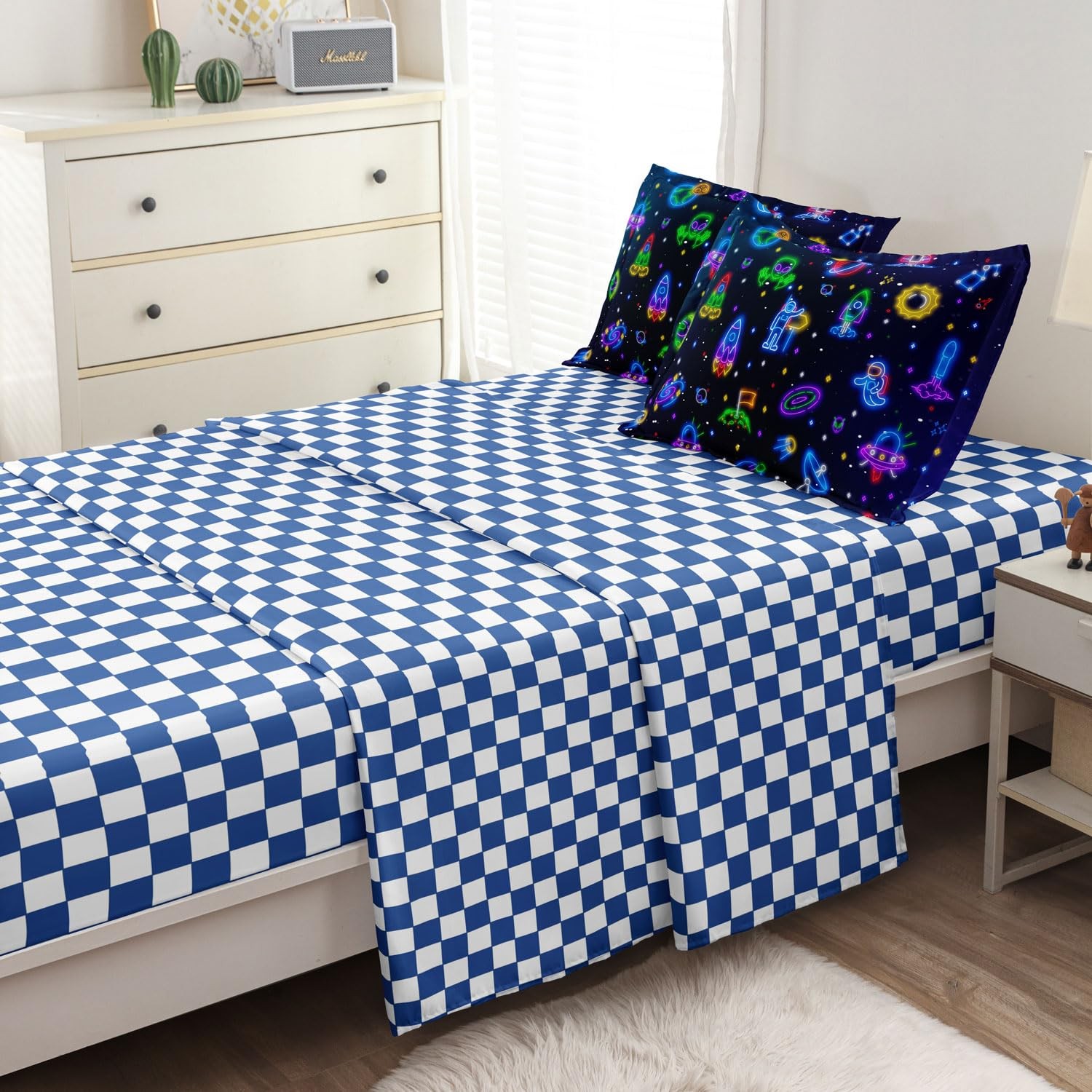 как выглядит Space Bedding Set for Boys Twin Size - 5 Piece Comforter, Sheets Pillowcase... фото