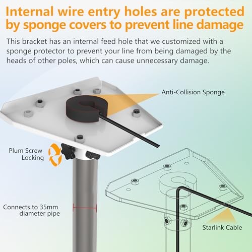 Starlink Gen 3 Pivot Roof Mount, Starlink Gen 3 Pipe Adapter Mount, 160 Tilt