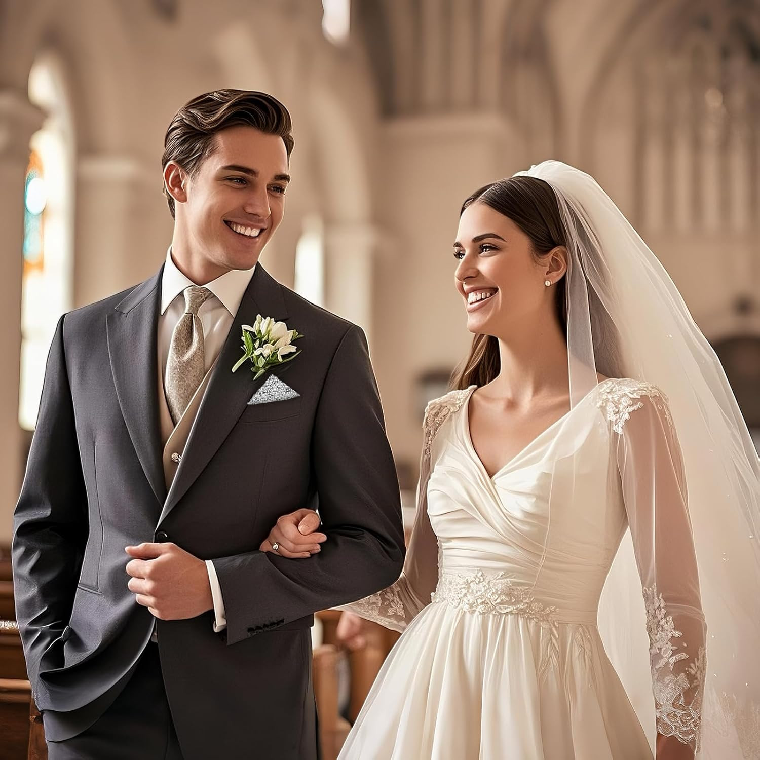 Rhinestone Pocket Squares for Men, Prefolded Handkerchiefs for Men Crystal Mens
