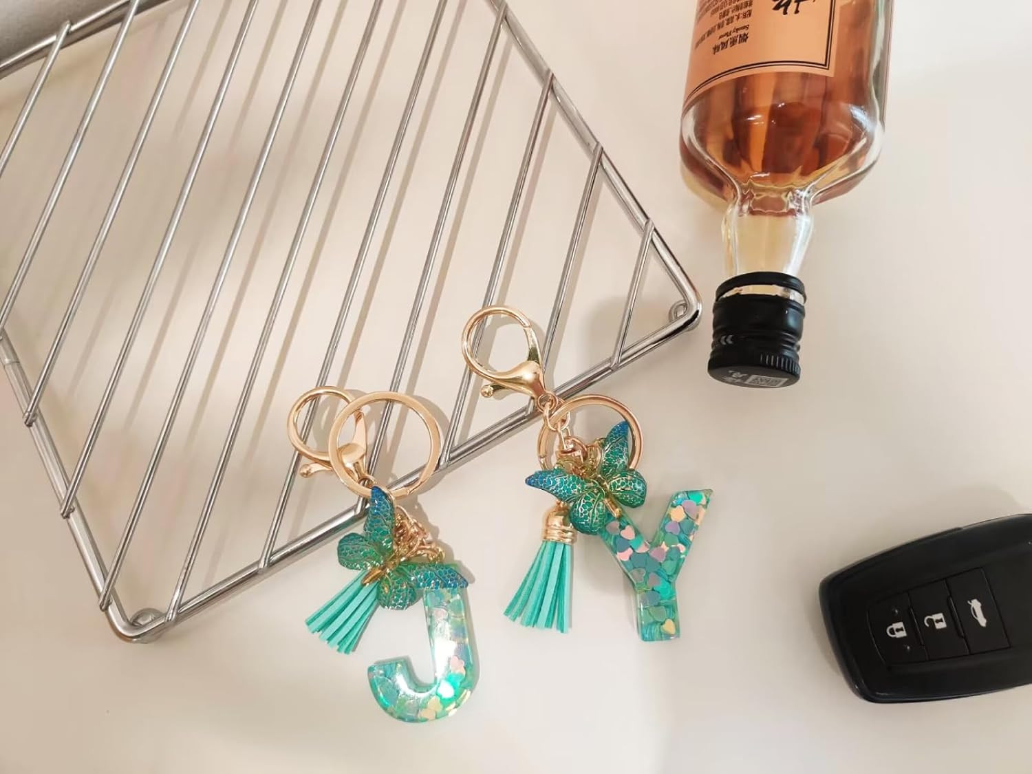 Purple-Blue Pink Green Resin Alphabet Initial Letter Keychain Tassel Butterfly K