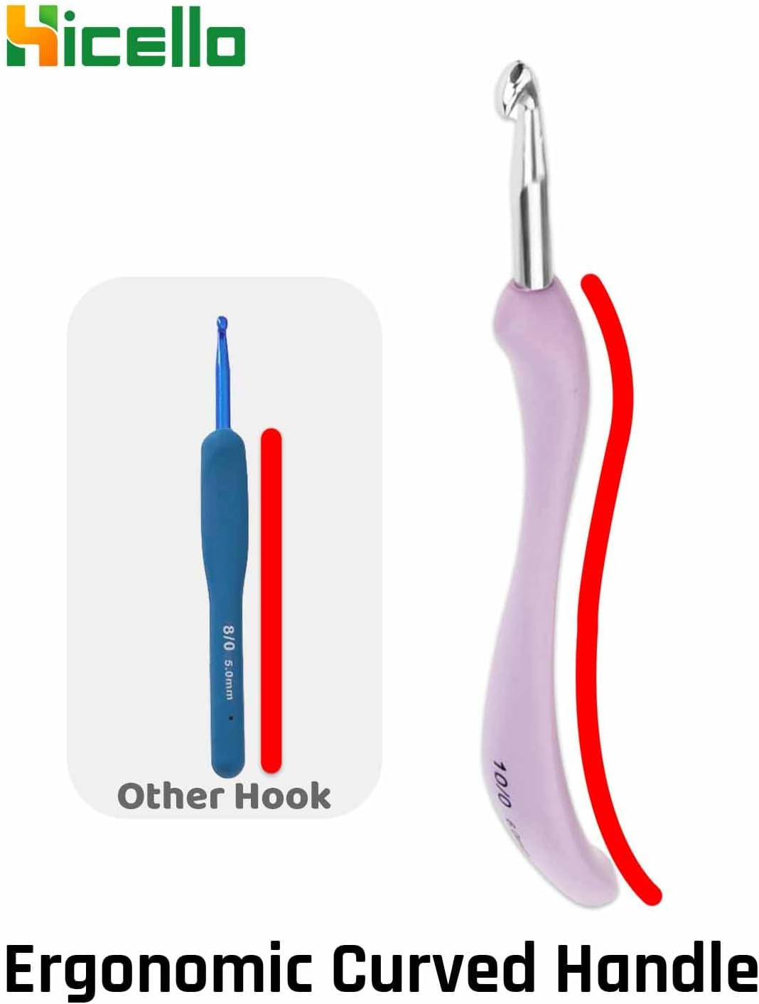 Crochet Hooks Set,Large Handle Ergonomic Grip Crochet Hook, 8PCS Aluminum Smooth