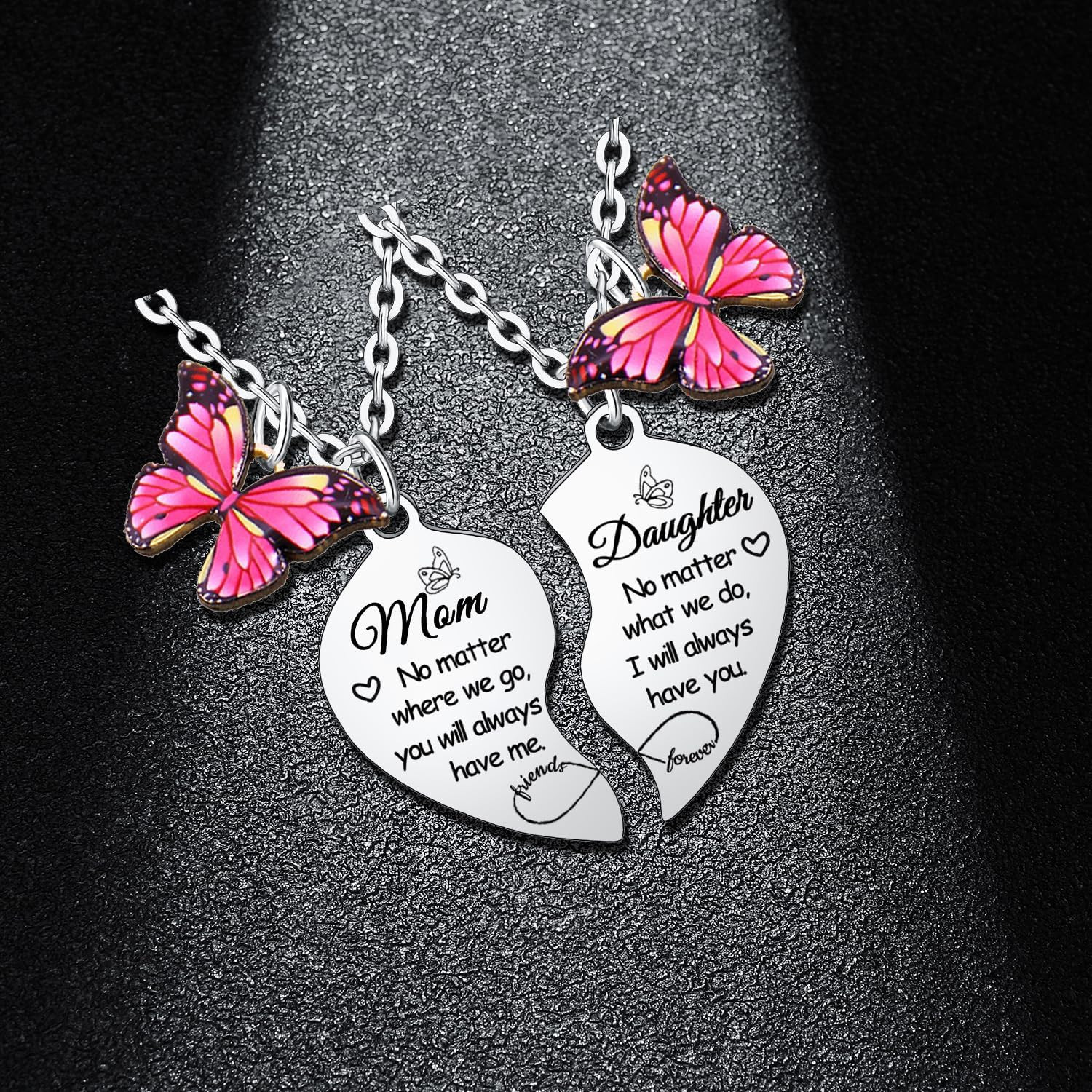 2PCs Mother Daughter Heart Matching Pendant Necklaces Set - I Love You Gifts for