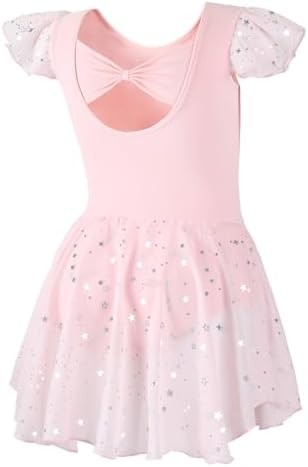 как выглядит Girls Ballet Leotard Shiny Dance Dress with Ruffle Sleeve фото