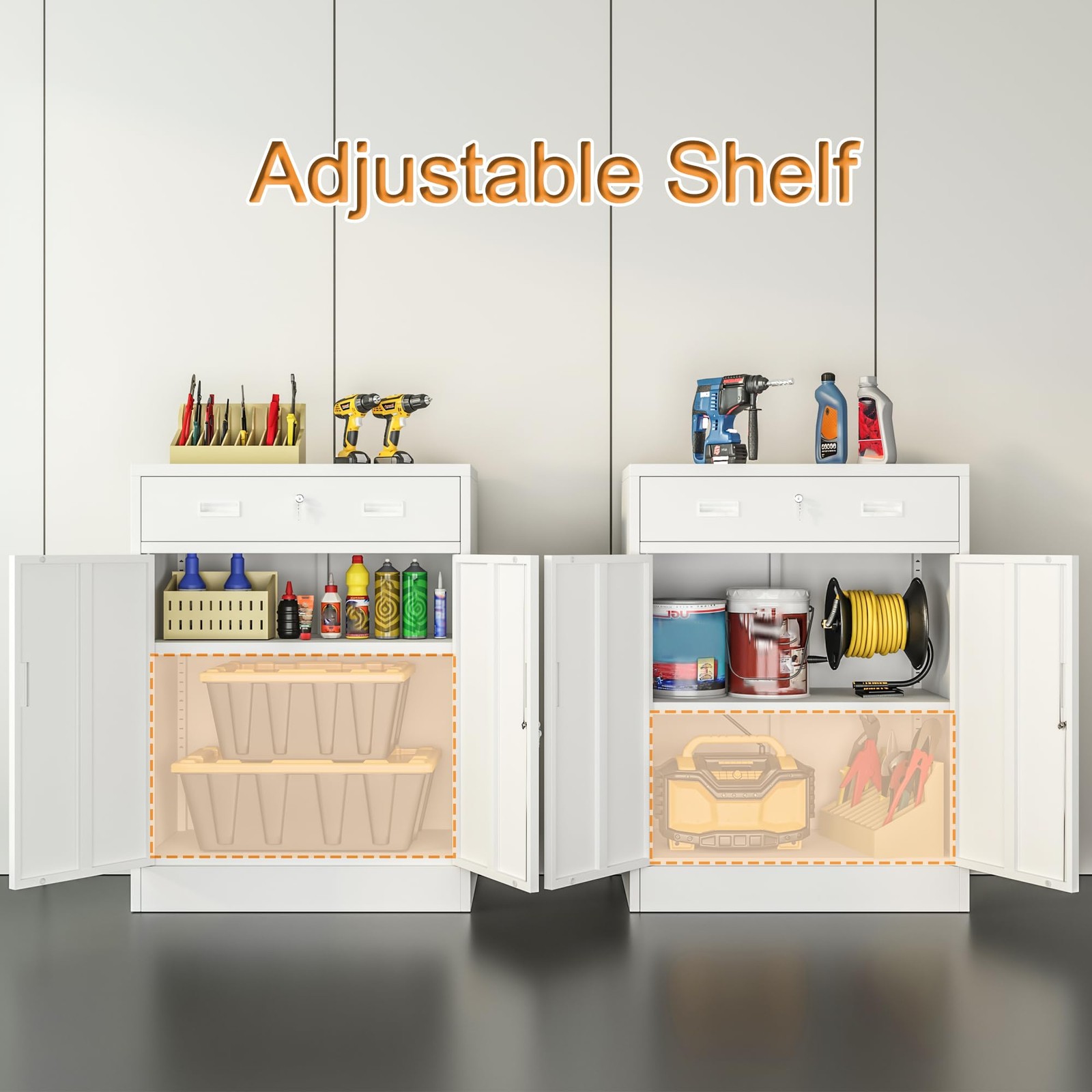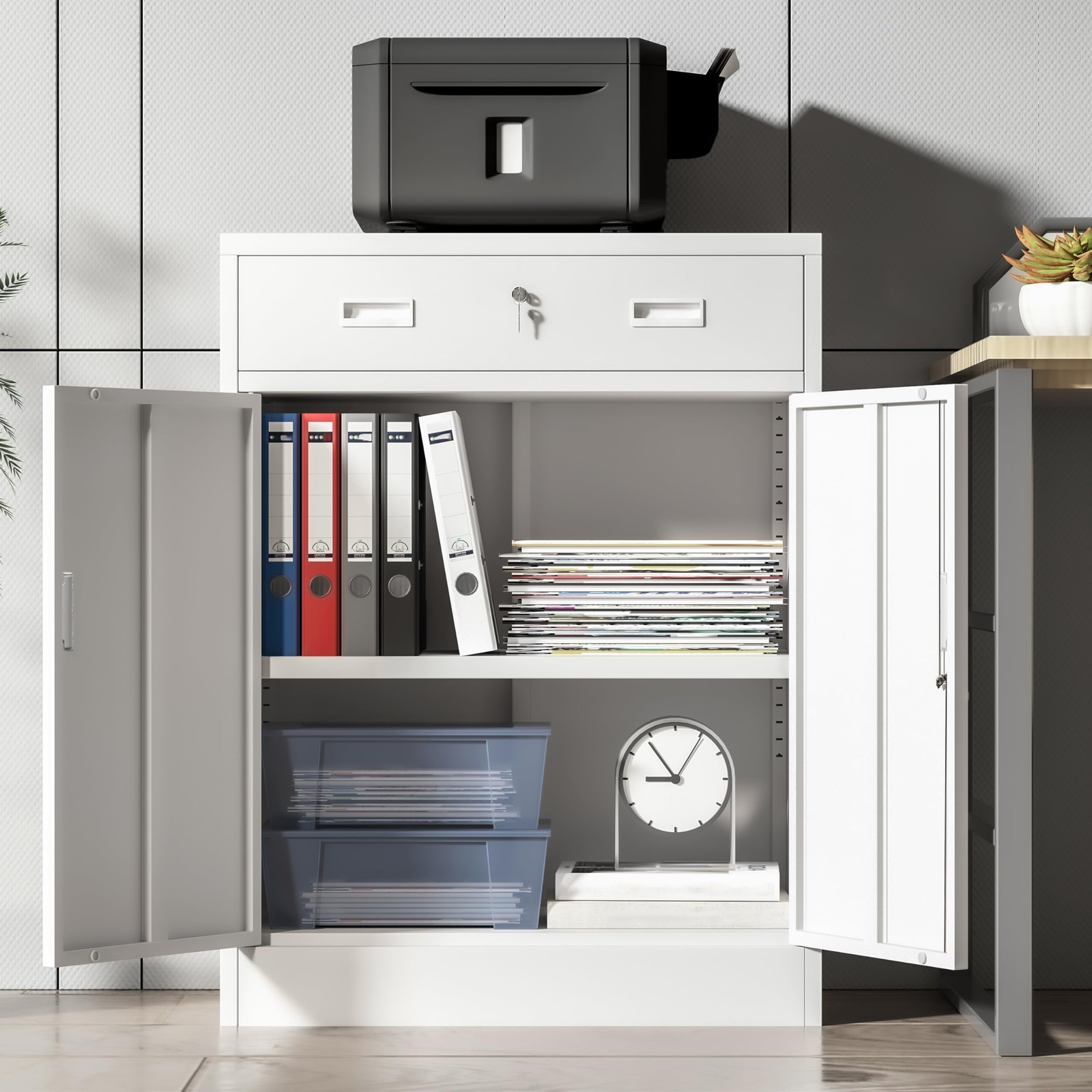 Metal Storage Cabinet Locking Cabinet with 1 Drawer and Adjustable Shelf