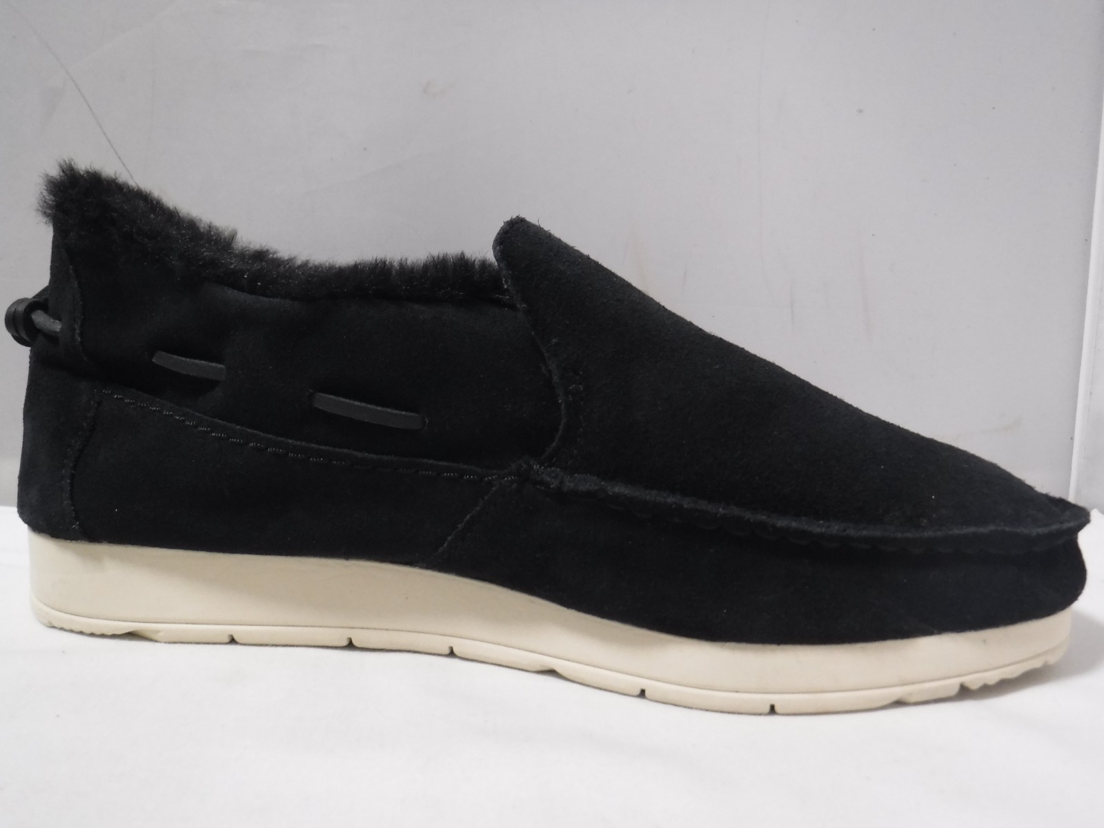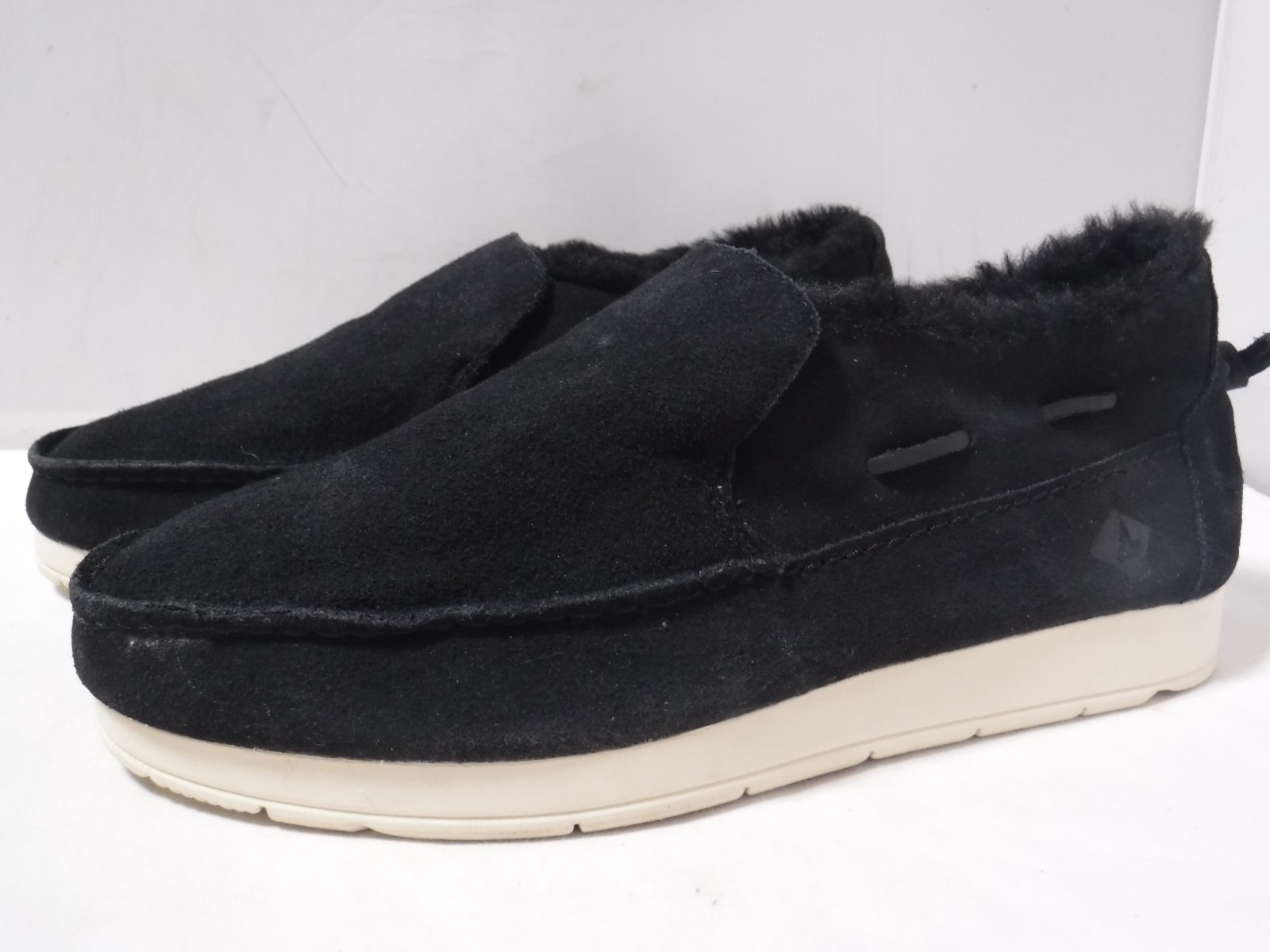 как выглядит GA2 SPERRY Moc-Sider Black Leather Upper Faux Fur Slipper Loafers Mens Size 9.5 фото