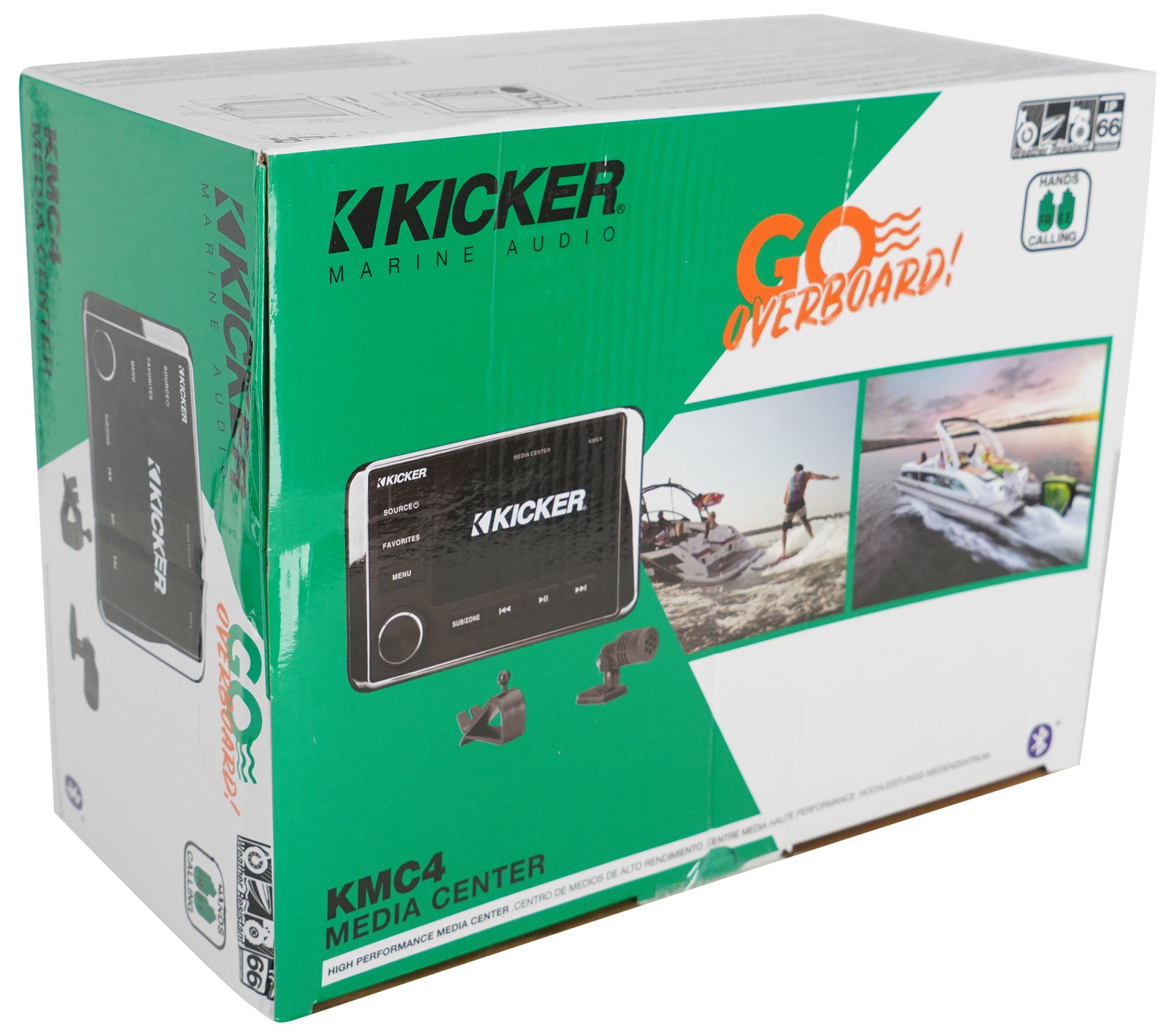 Kicker 51KMC4 Marine Boat Gauge Hole Dual Zone Bluetooth Receiver w/Mic KMC4