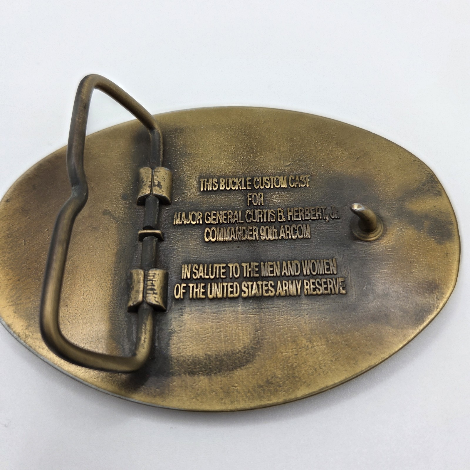 как выглядит Vintage Tough Ombres 90th U.S. Army Reserve Command Solid Brass Belt Buckle фото