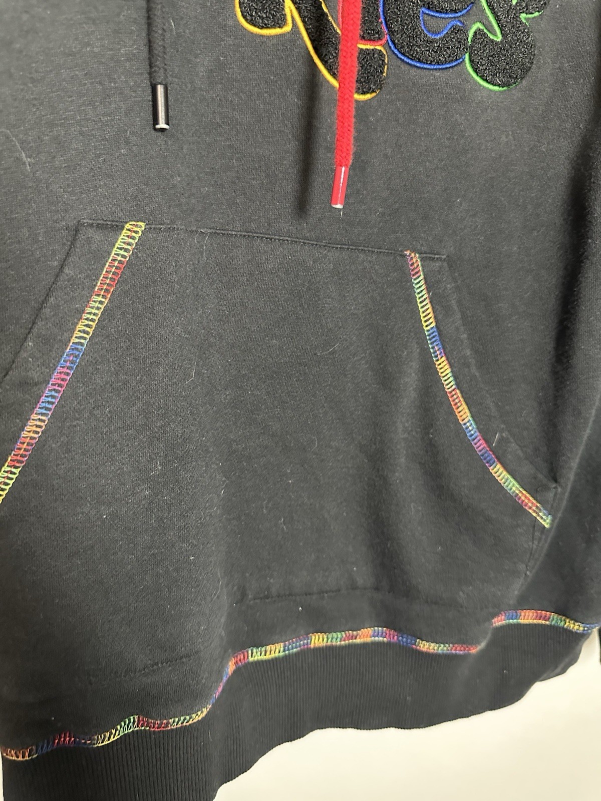 как выглядит Cookies SF "Pushin Weight" Hoodie - Black w/ Rainbow Contrast Stitch - Size M фото