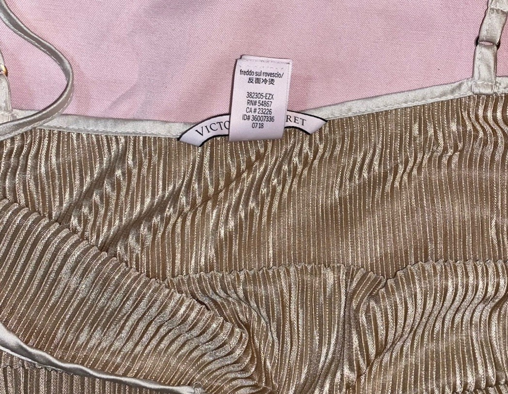 как выглядит Y2K Victoria s Secret Plisse Satin Slip Gold Foil Small Semi-Sheer Coquette Whim фото