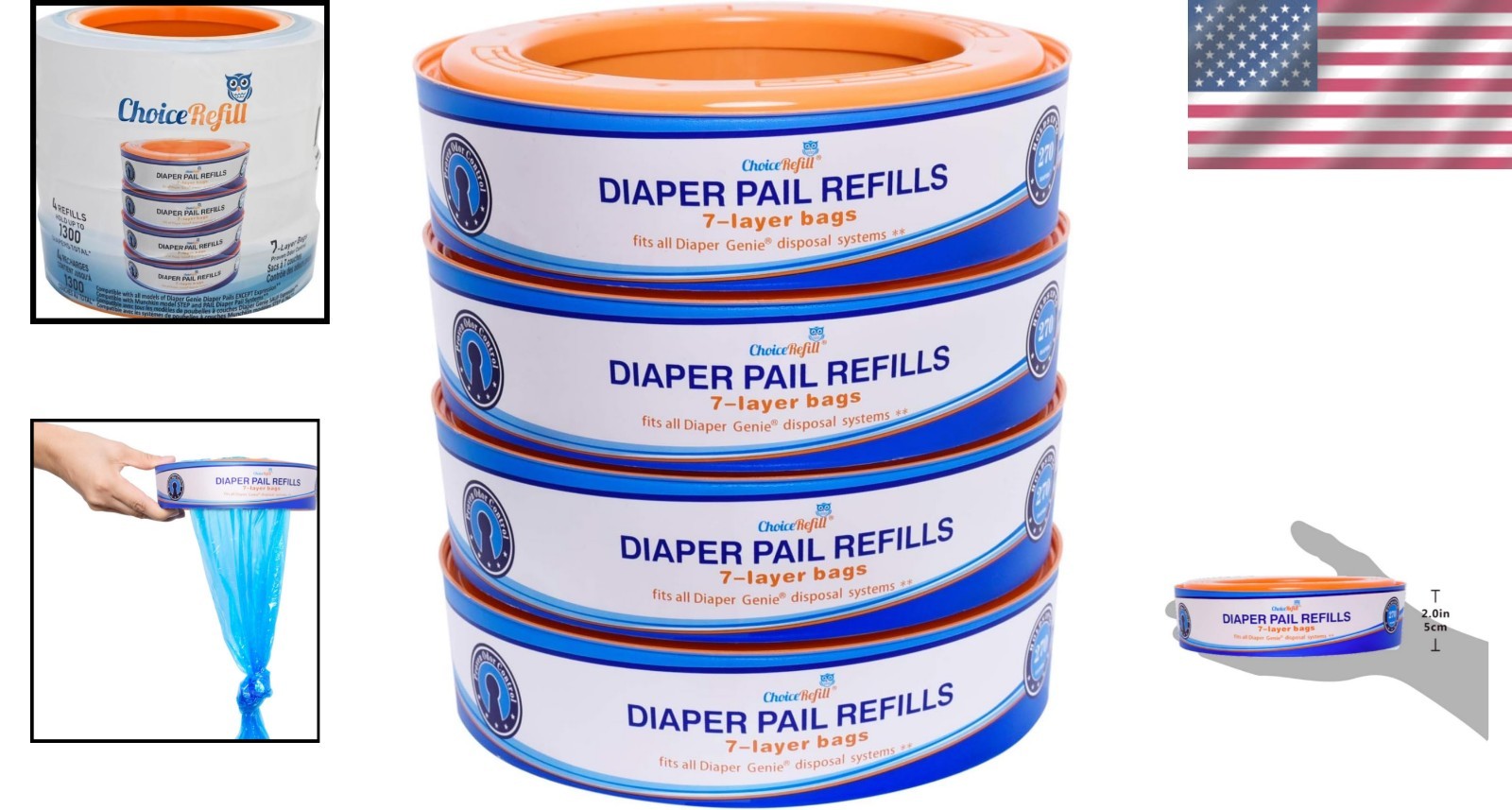 Heavy Duty Diaper Genie Refills, 4-Pack, 1300 Count - Odor Control Guarantee