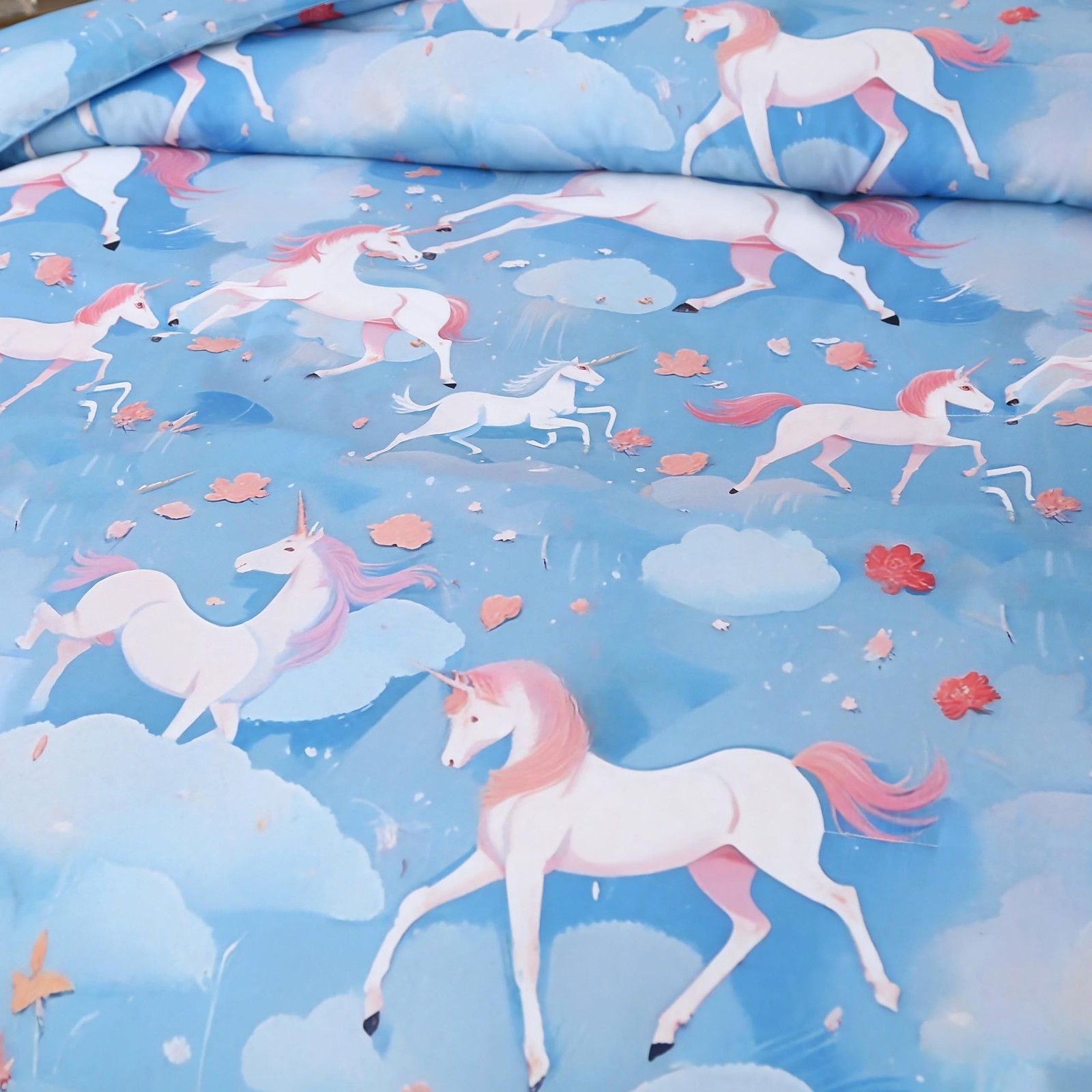 как выглядит 3Pcs Unicorn Twin Comforter Set,Blue Microfiber Digital Printing Toddler Bedd... фото