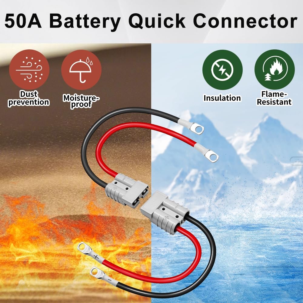 2 Pcs 50A Battery Quick Connector, Anderson Connector 50A Kit, 7AWG 600V 1.64...