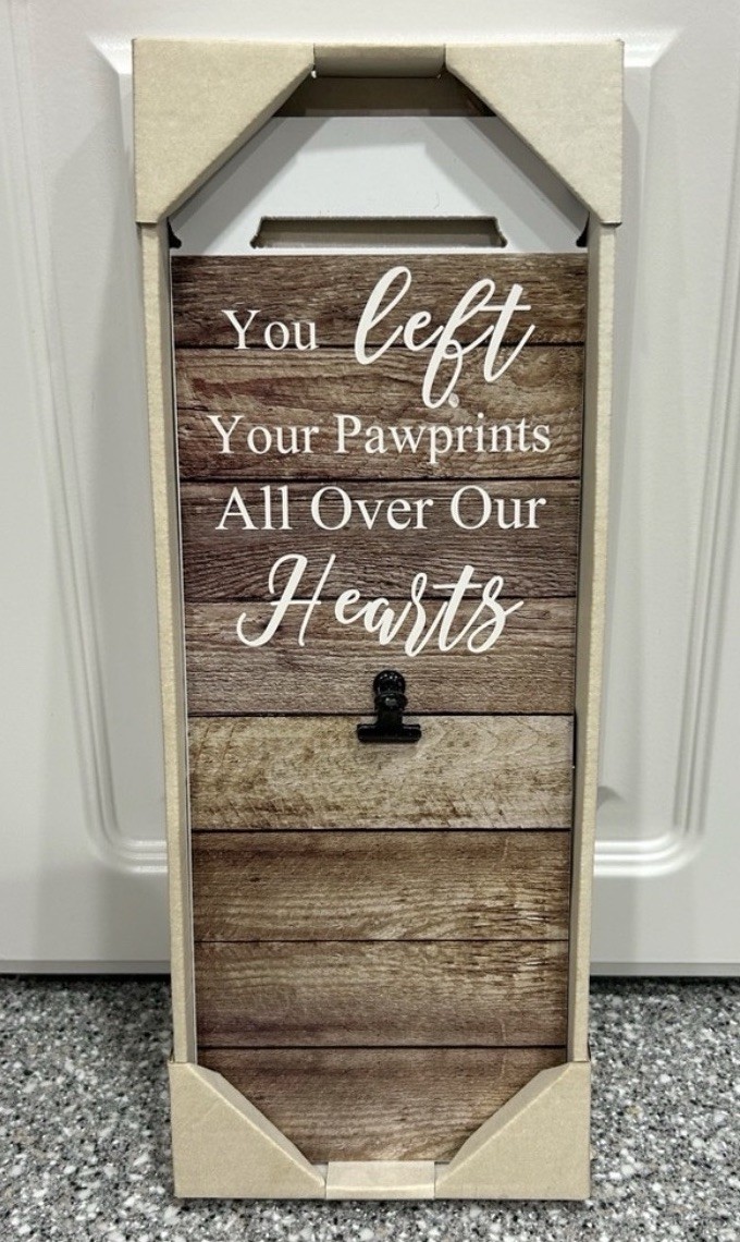 Pet Memorial Wooden Plaque Sign, Rustic Brown White, Clip, Vertical, 14x5