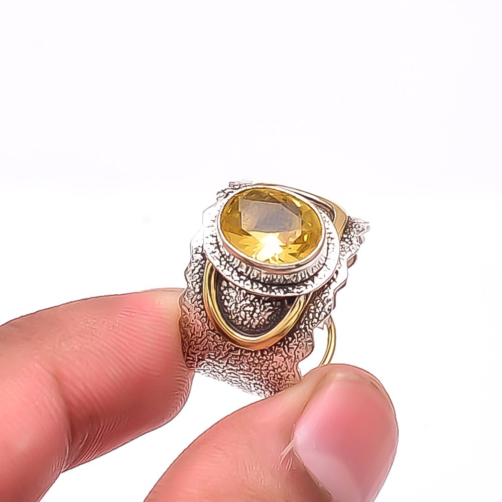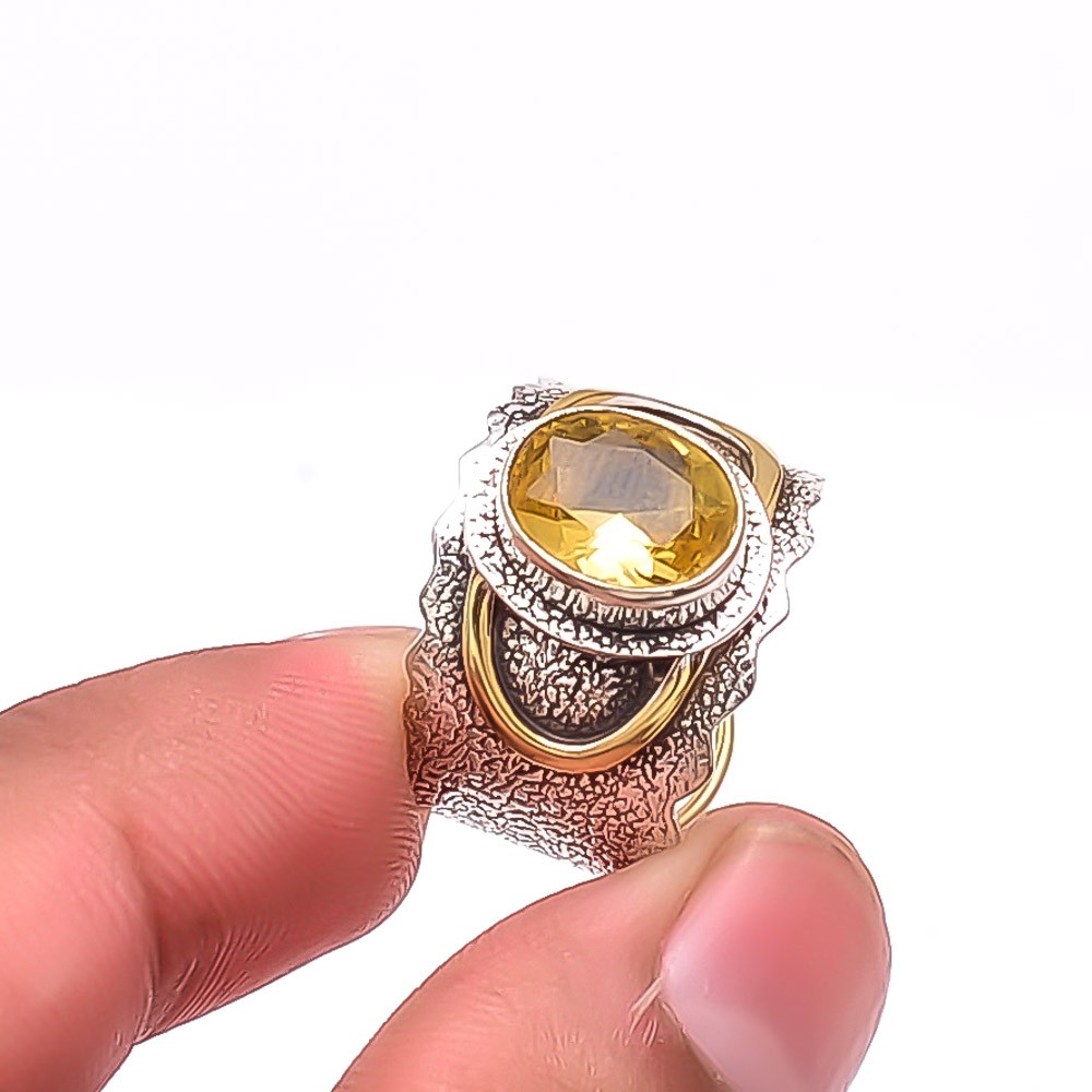 Citrine 925 Sterling Silver Designer Oxidised Ring S.8, Christmas Gift R49164