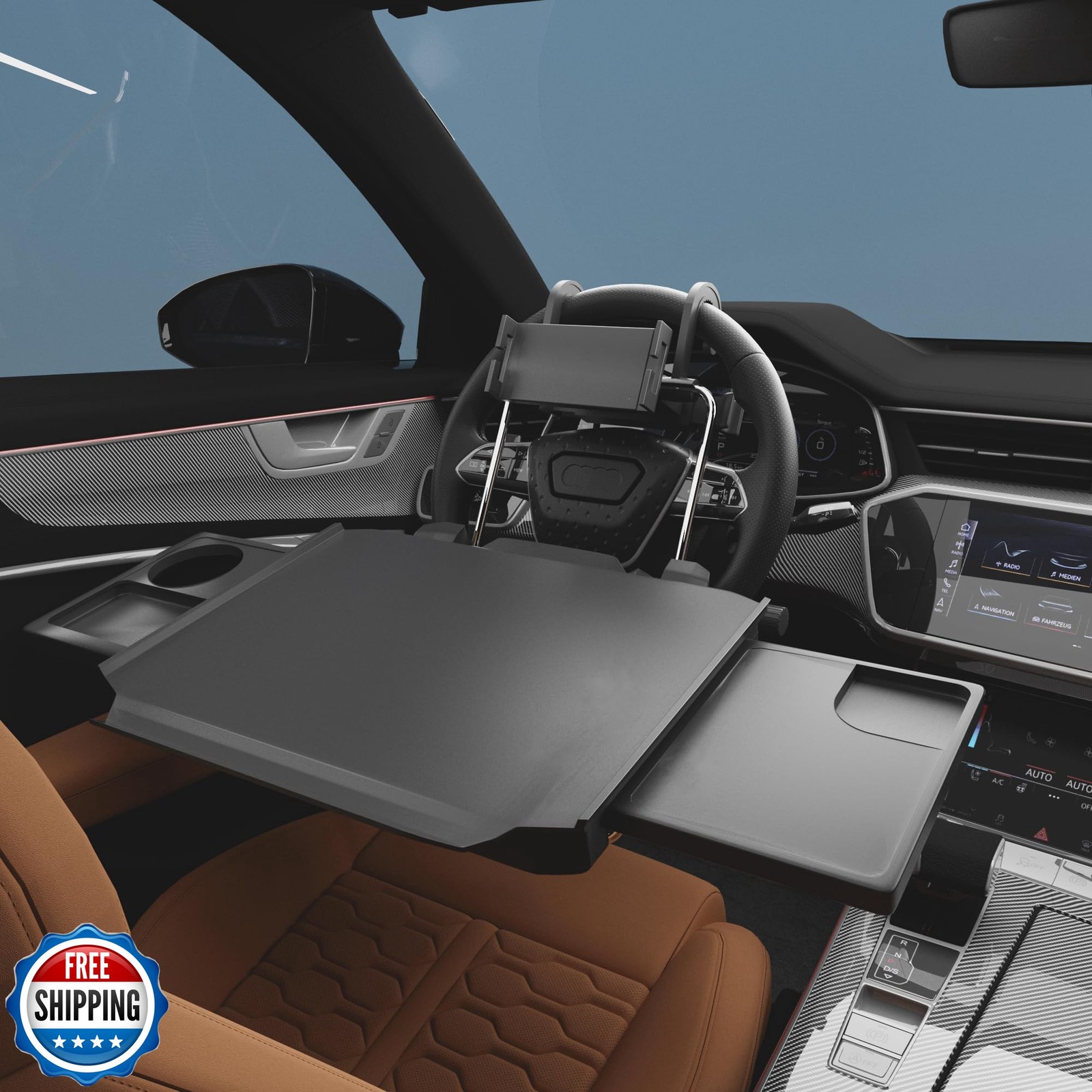 HZGAMER 2 in 1 Large Car Steering Wheel Tray/Back Seat Headrest Table with Ph...