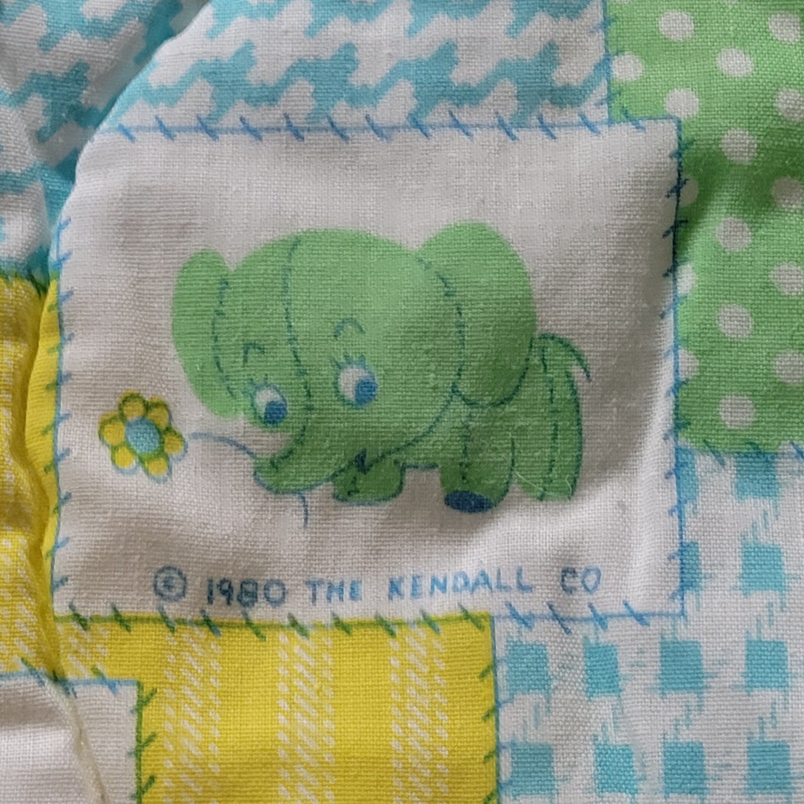 Vintage 1980 Curity Zip-A-Quilt Baby Sleeping Bag Elephant Mouse Patchwork EUC