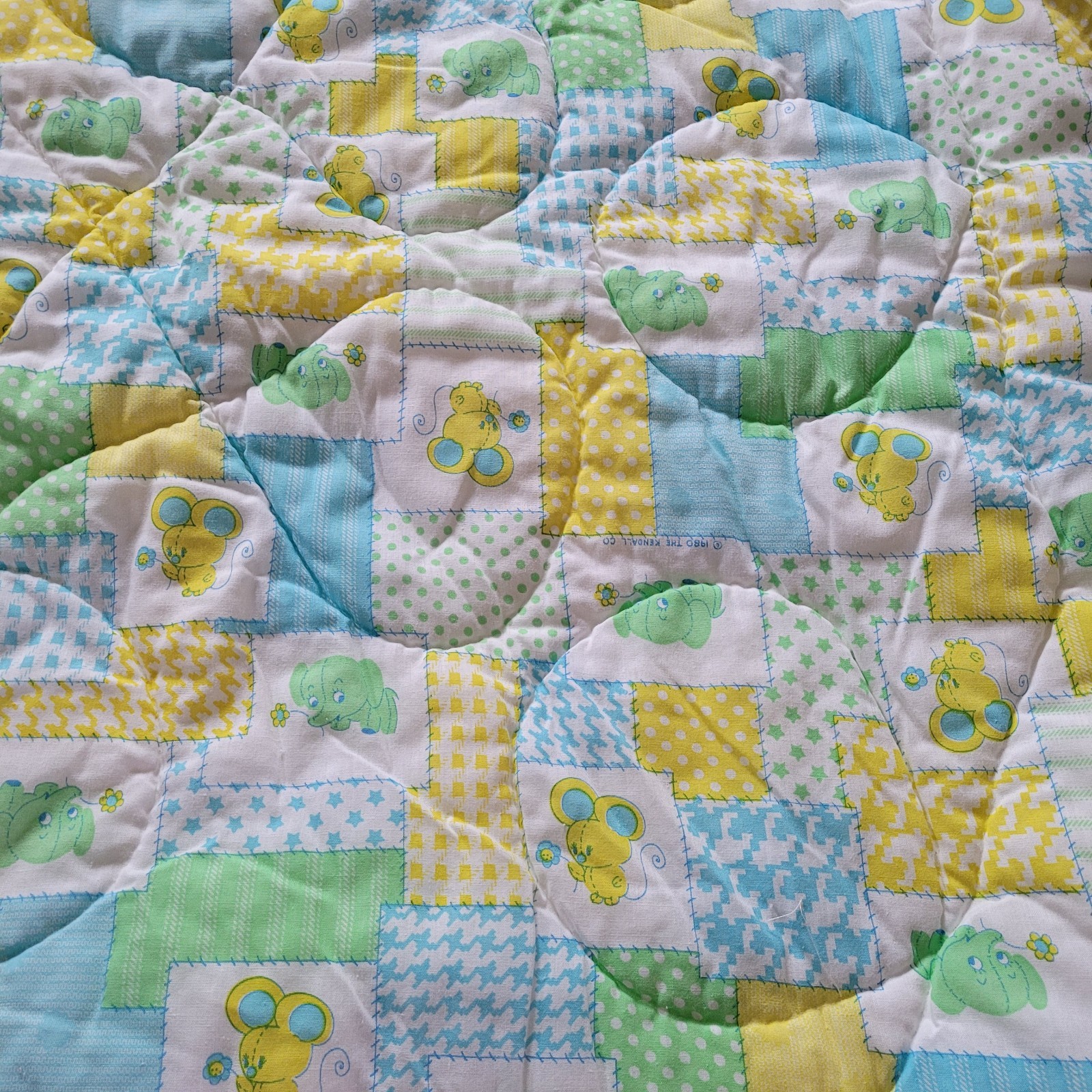 как выглядит Vintage 1980 Curity Zip-A-Quilt Baby Sleeping Bag Elephant Mouse Patchwork EUC фото