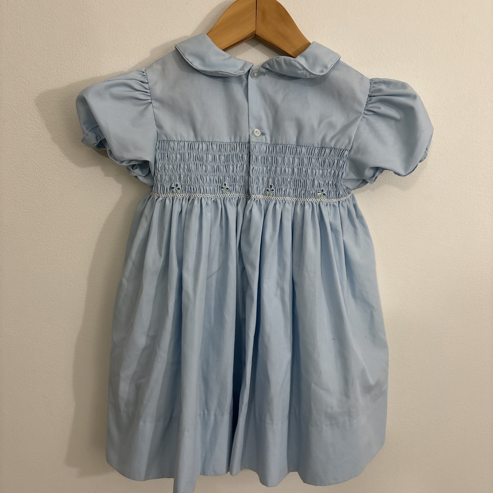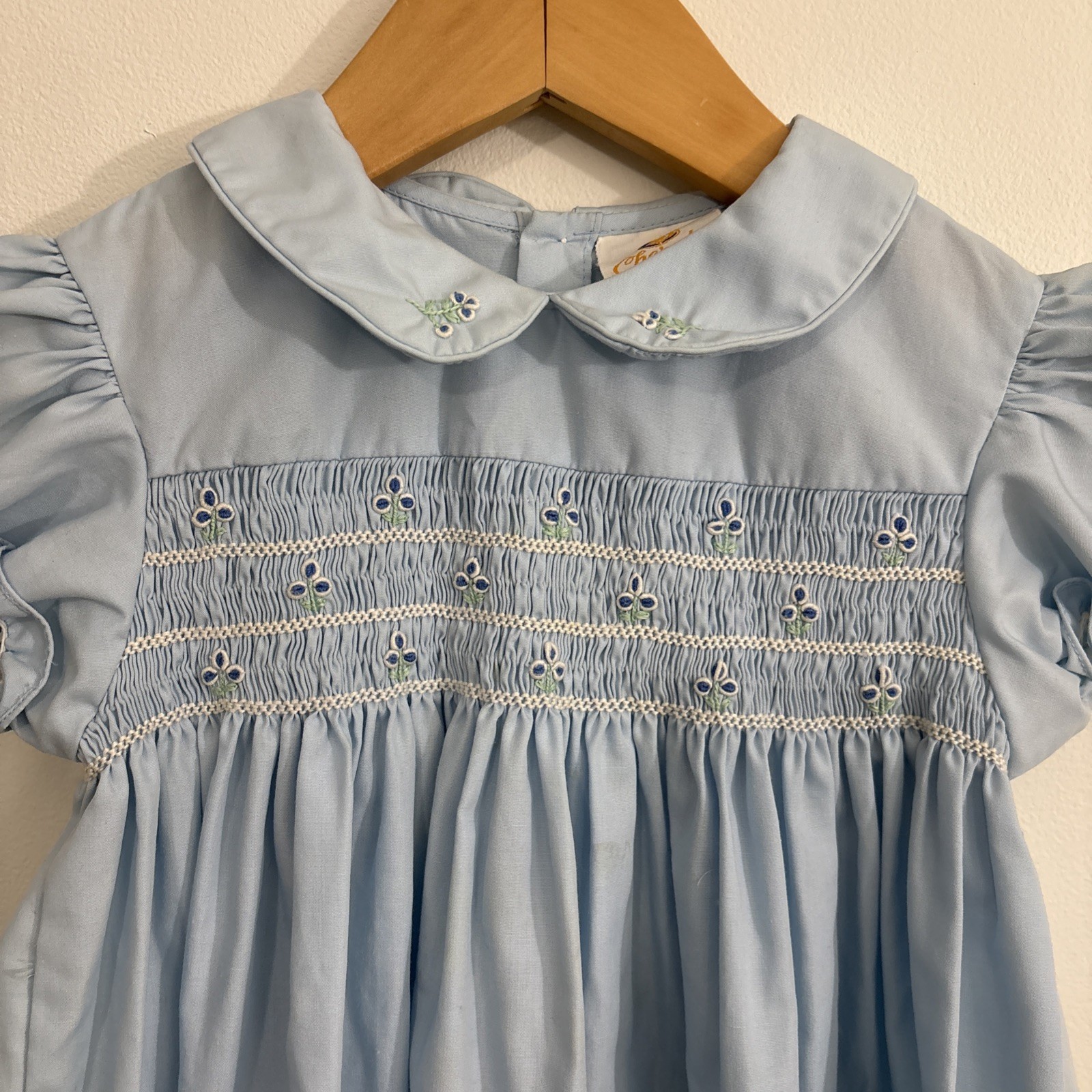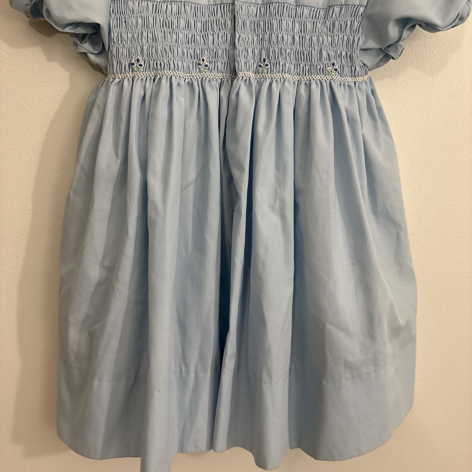 Vtg Cherubs Blue Smocked Toddler Girl Dress Embroidered Flower Buds Size 2t
