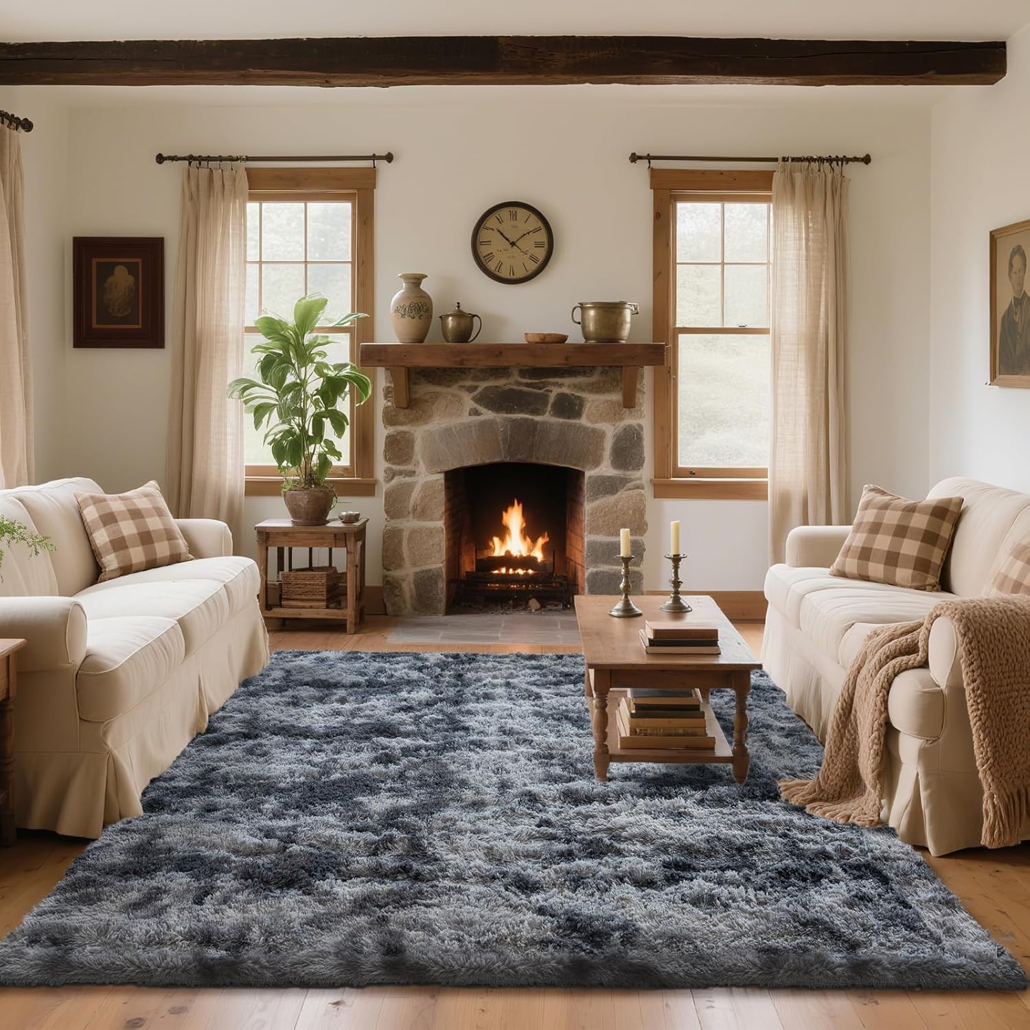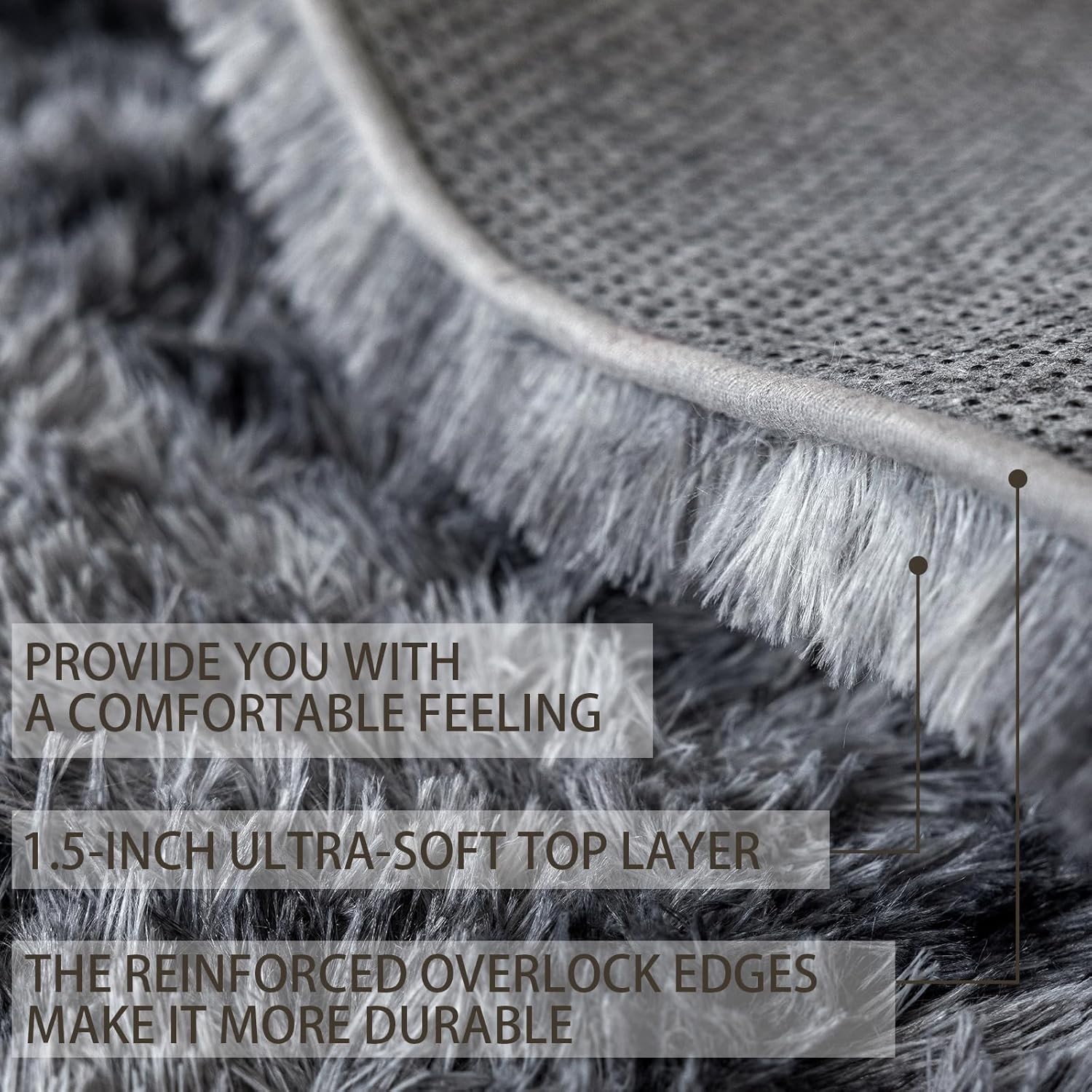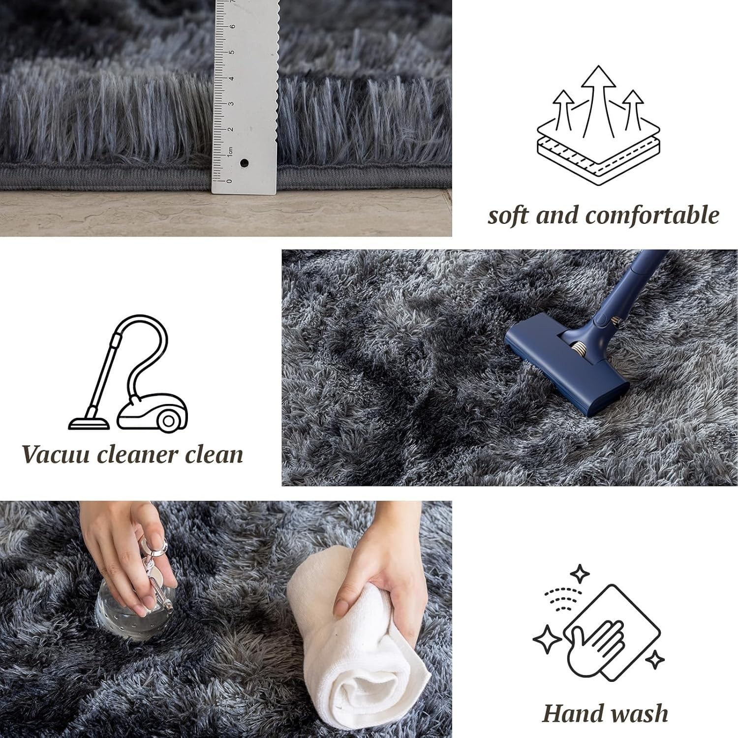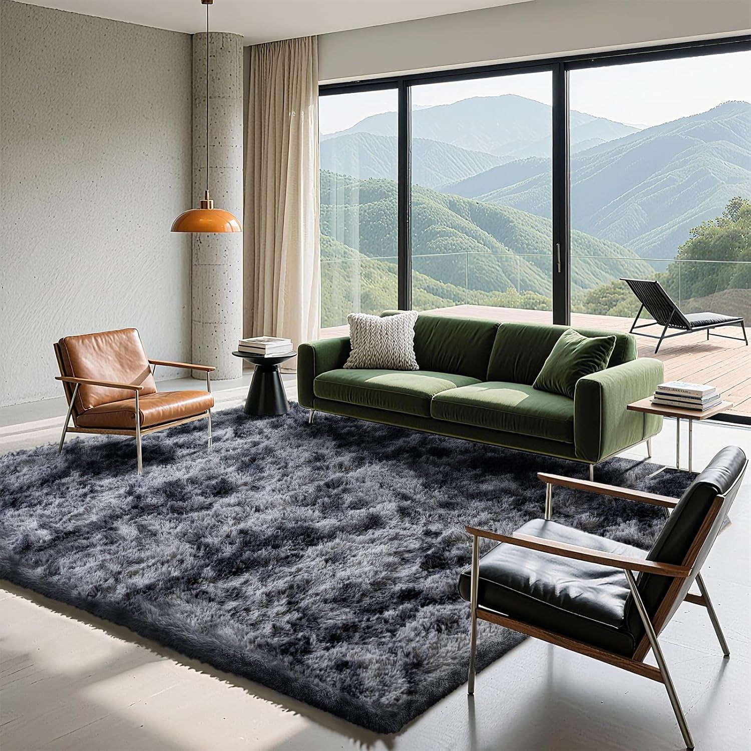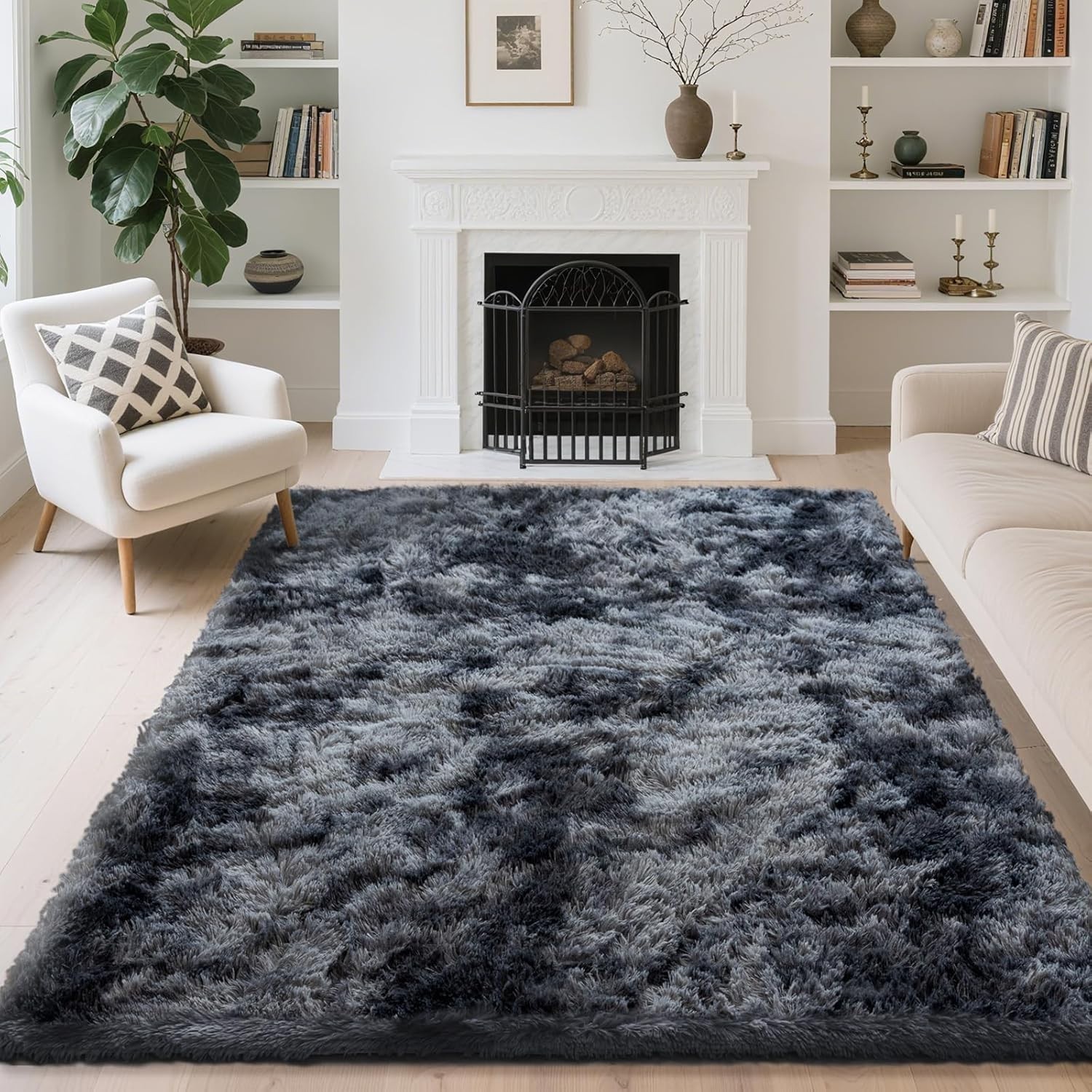 Fluffy Area Rug Large Soft Shaggy Tie-dyed Grey Carpet Mat for Living Room Floor