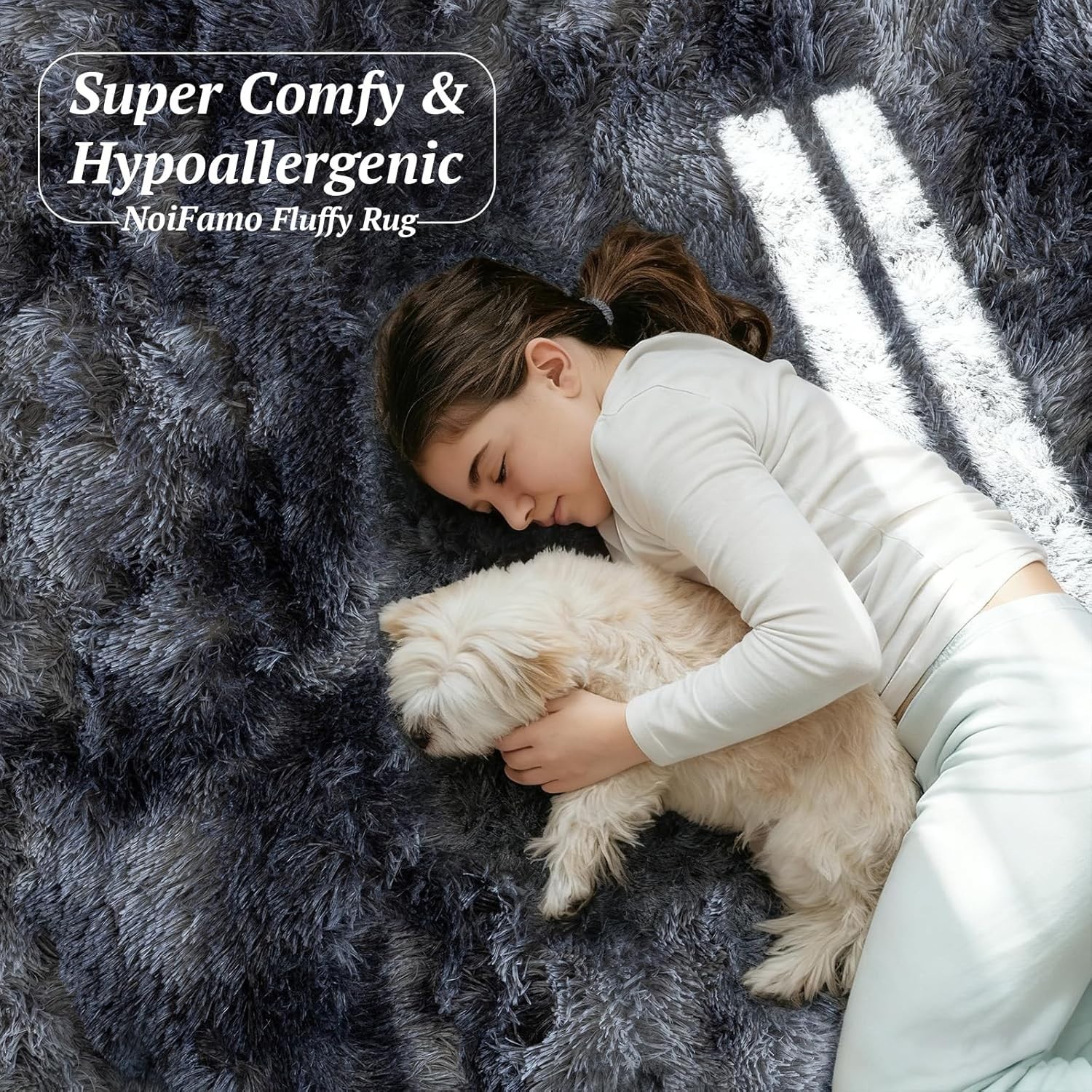 как выглядит Fluffy Area Rug Large Soft Shaggy Tie-dyed Grey Carpet Mat for Living Room Floor фото