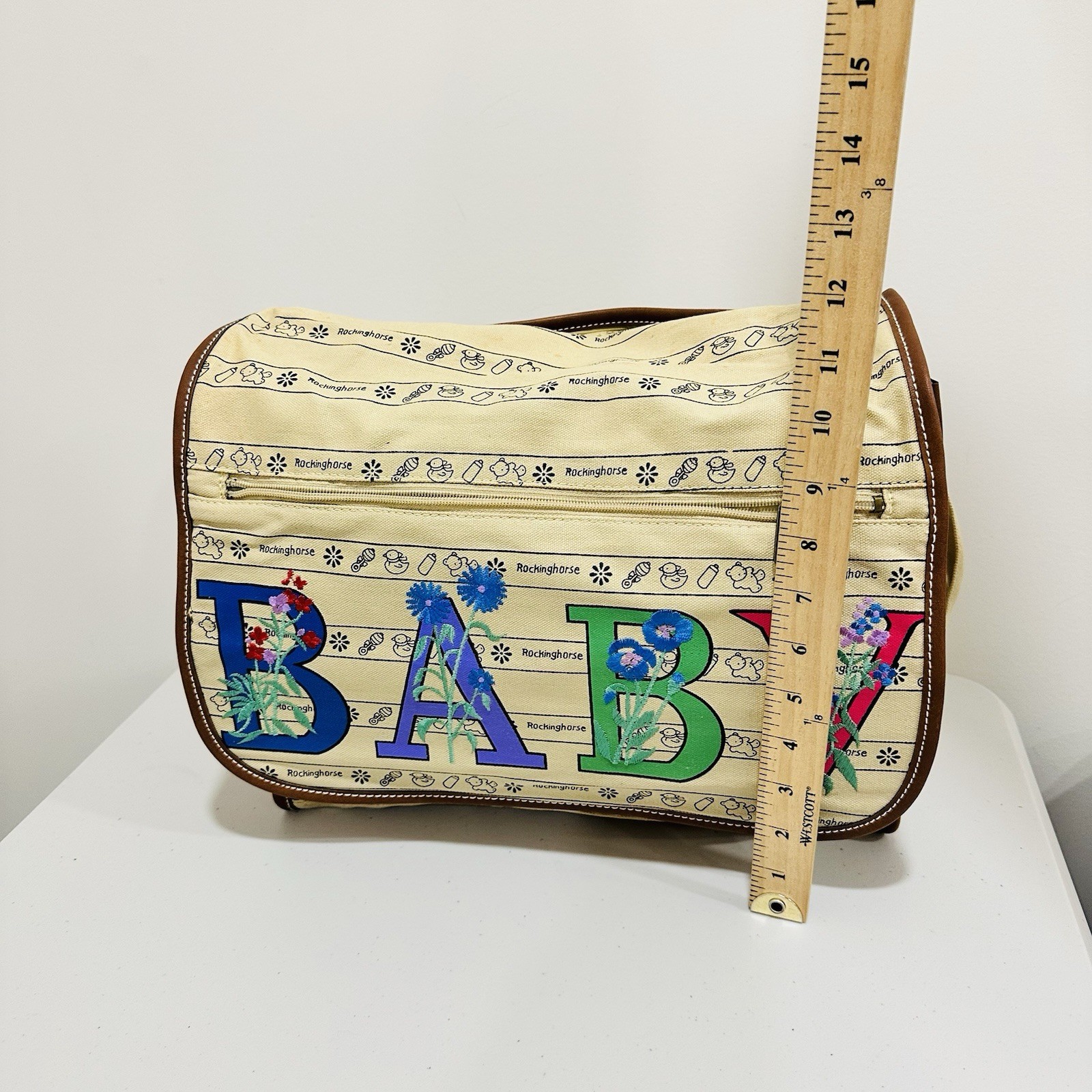 Vintage 90s Syms Baby Diaper Canvas Bag Animals, Floral Bright Colors NWT