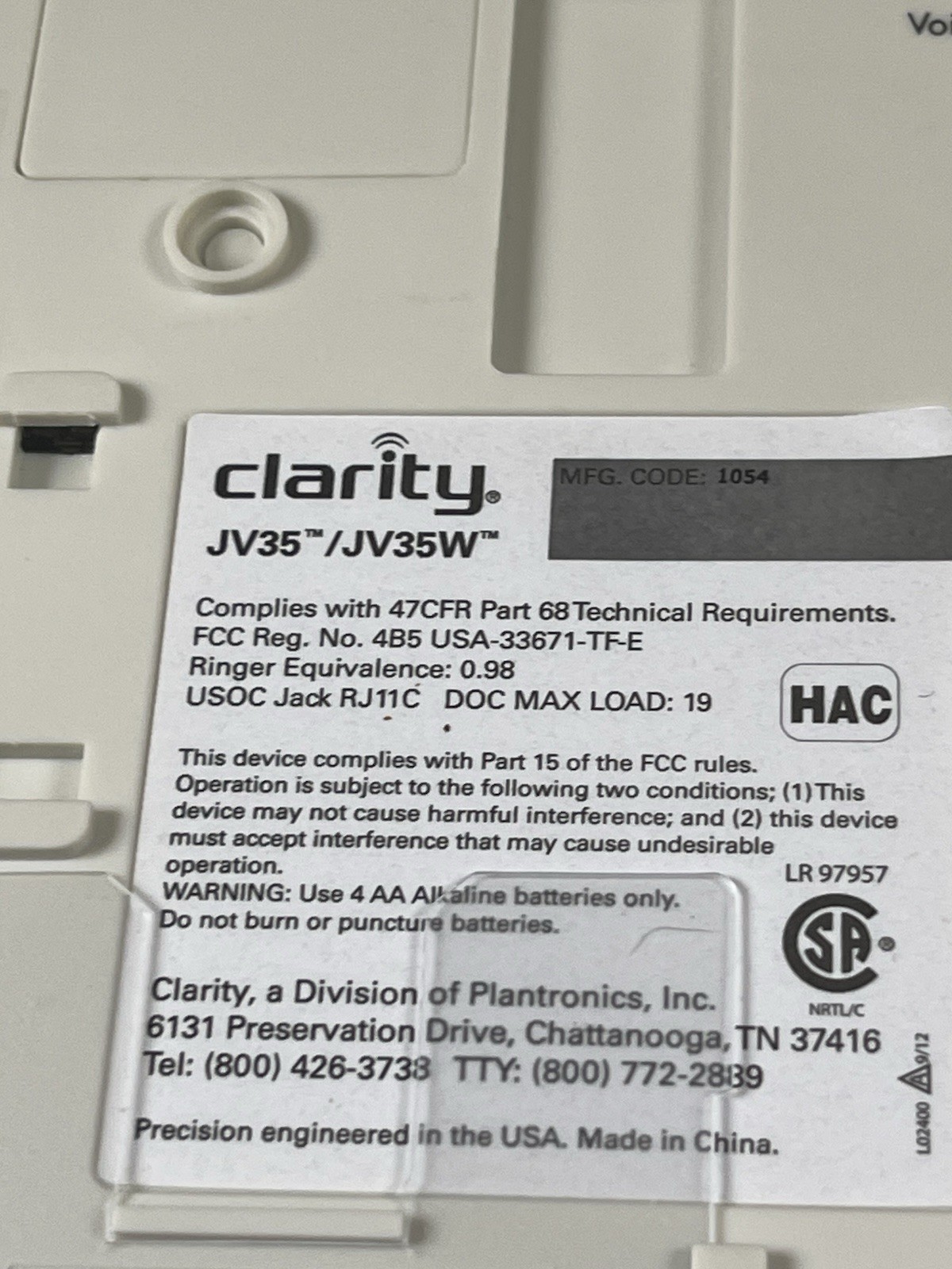 Clarity JV35 Amplified Braille Telephone Large Black Number Keys Loud Corded