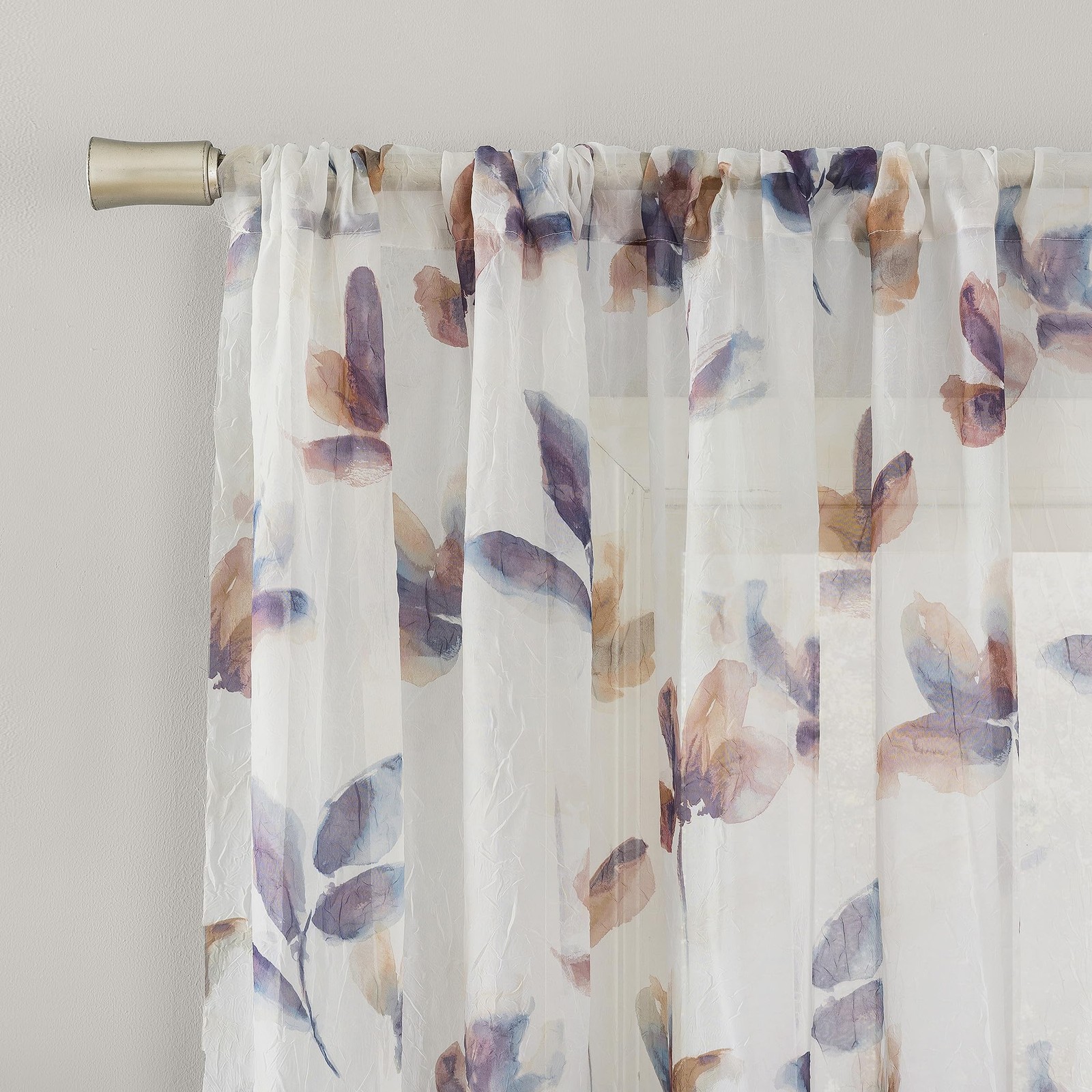 как выглядит Ellie Floral Print Sheer Rod Pocket Curtain Panel, Multi Color, 51" W x 63" L... фото