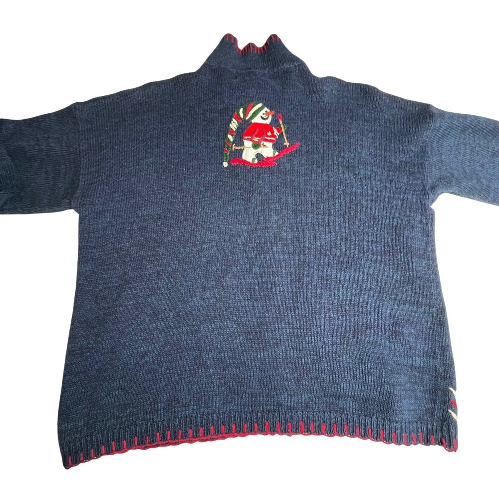 как выглядит Vintage Heirloom Collectibles Blue Snowman Ugly Christmas Sweater Cardigan L фото