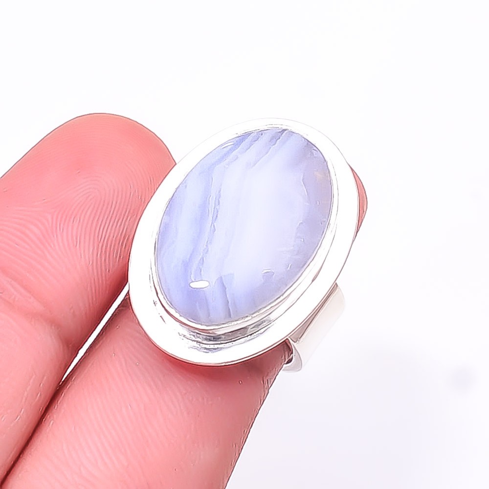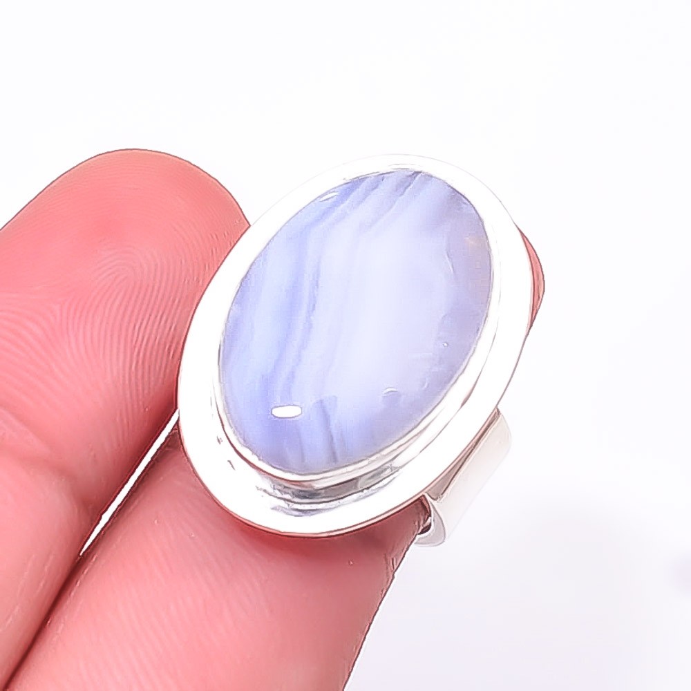 Blue Lace Agate - Namibia Designer 925 Sterling Silver Handmade Ring S.6 R042017